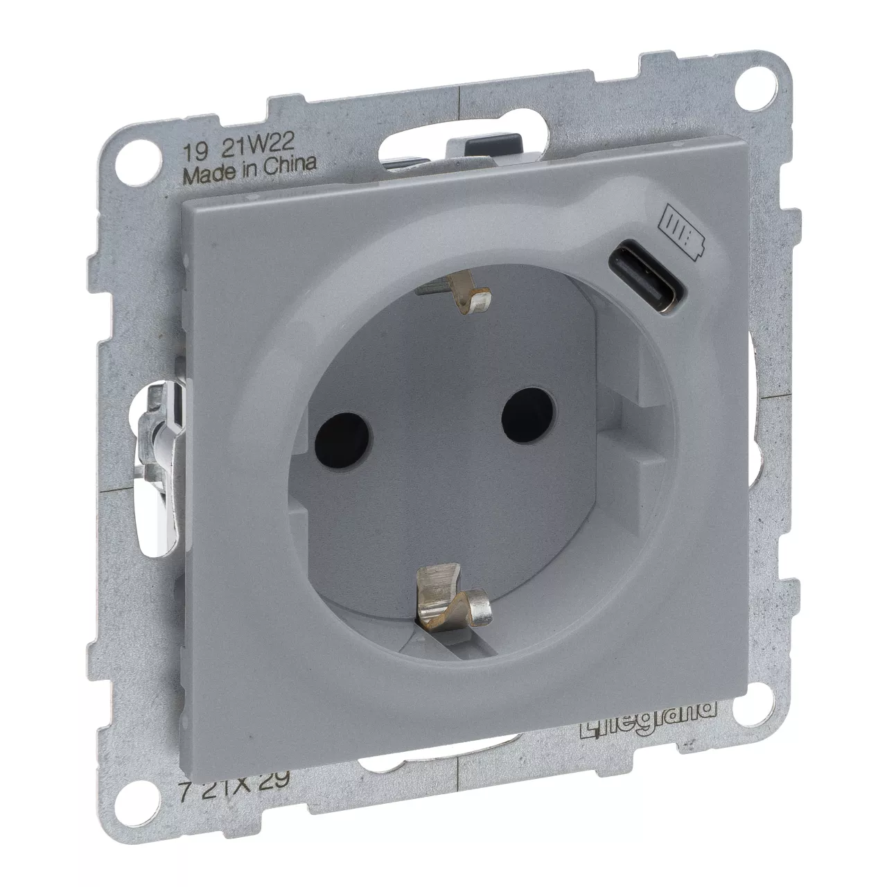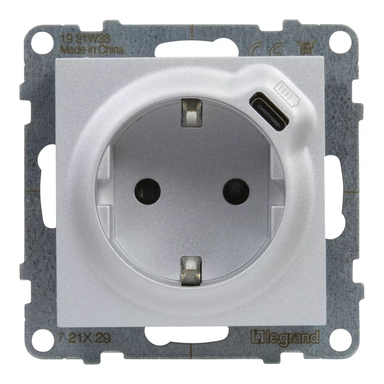 SUNO - Gniazdo SCHUKO 2P+Z - 16 A - 250 V~ - + USB TYP C - 1,5 A - 5 V, Aluminium, Legrand
