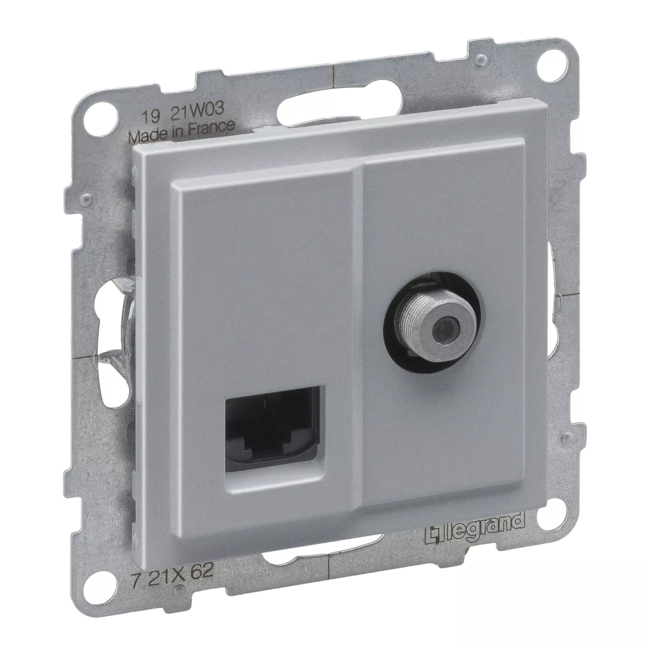 SUNO - Gniazdo TV typ "F" 1.5 dB + RJ45 KAT 6 UTP, Aluminium, Legrand