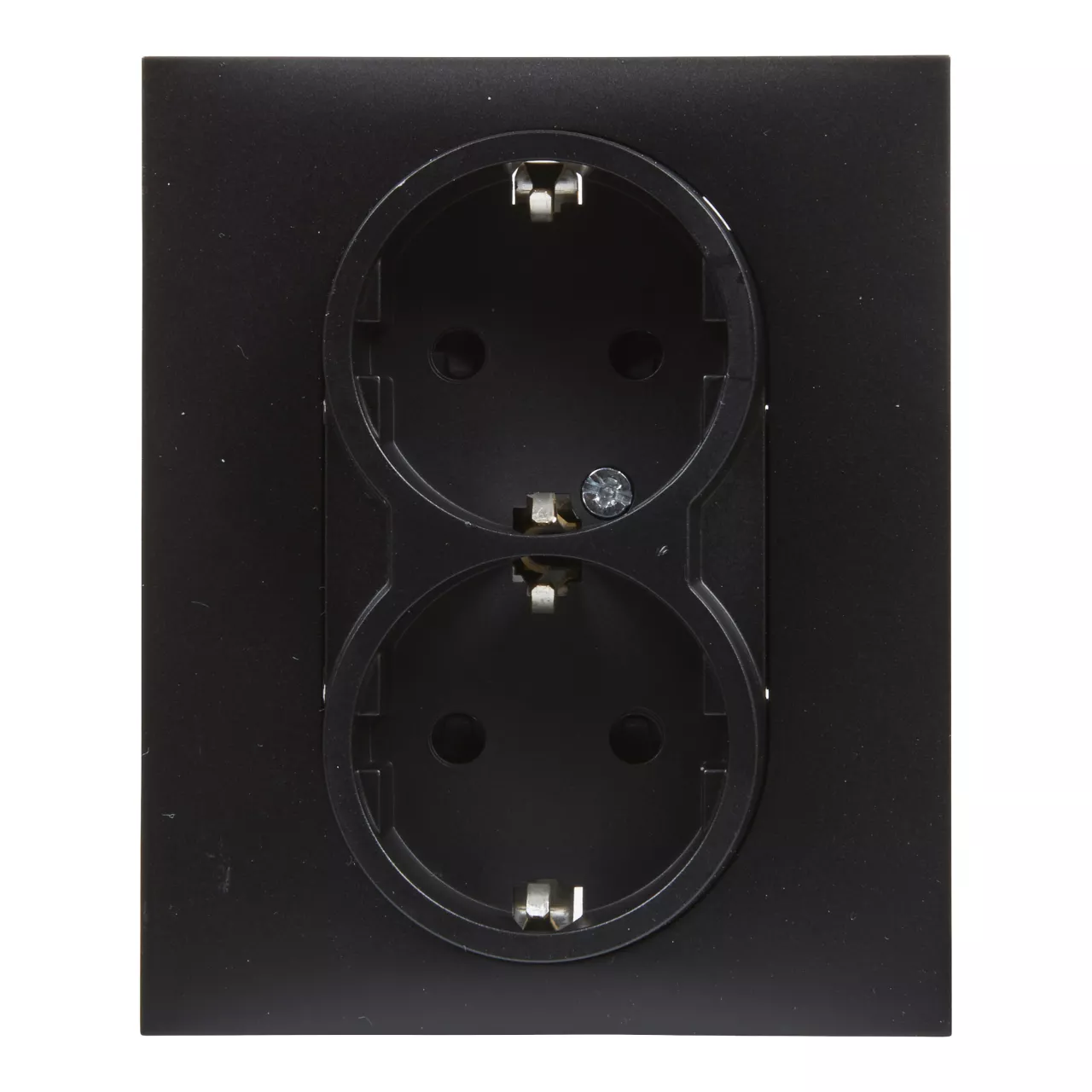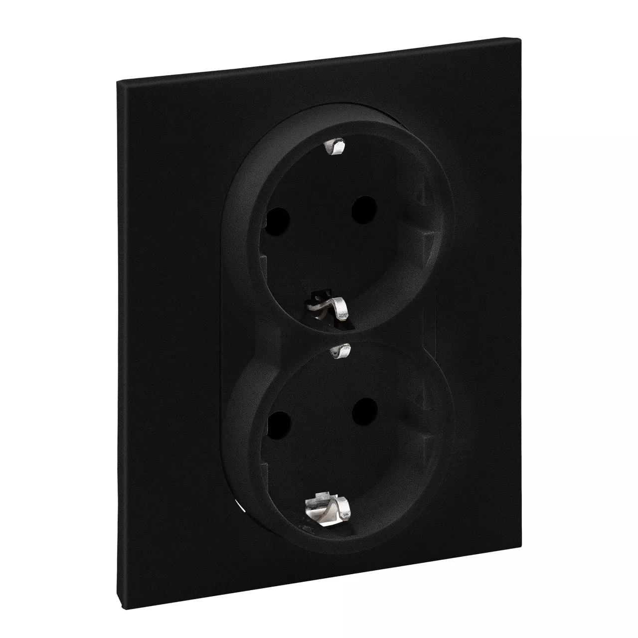 SUNO - Gniazdo SCHUKO 2x2P+Z z przesłoną - zaciski automatyczne (monoblok), Czarny, Legrand