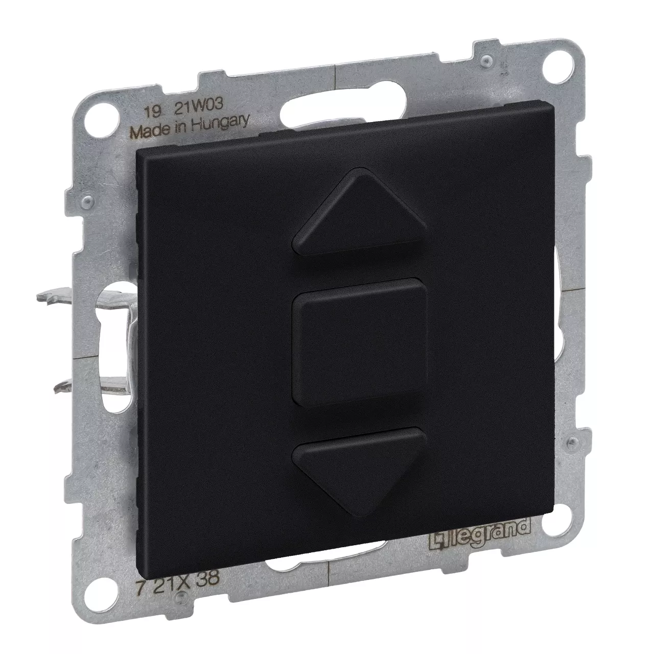 SUNO - Przyciskowy łącznik rolet - 6 A - 250 V~ - 3 pozycyjny: góra, dół, stop - pośrednie sterowanie roletami, Czarny, Legrand