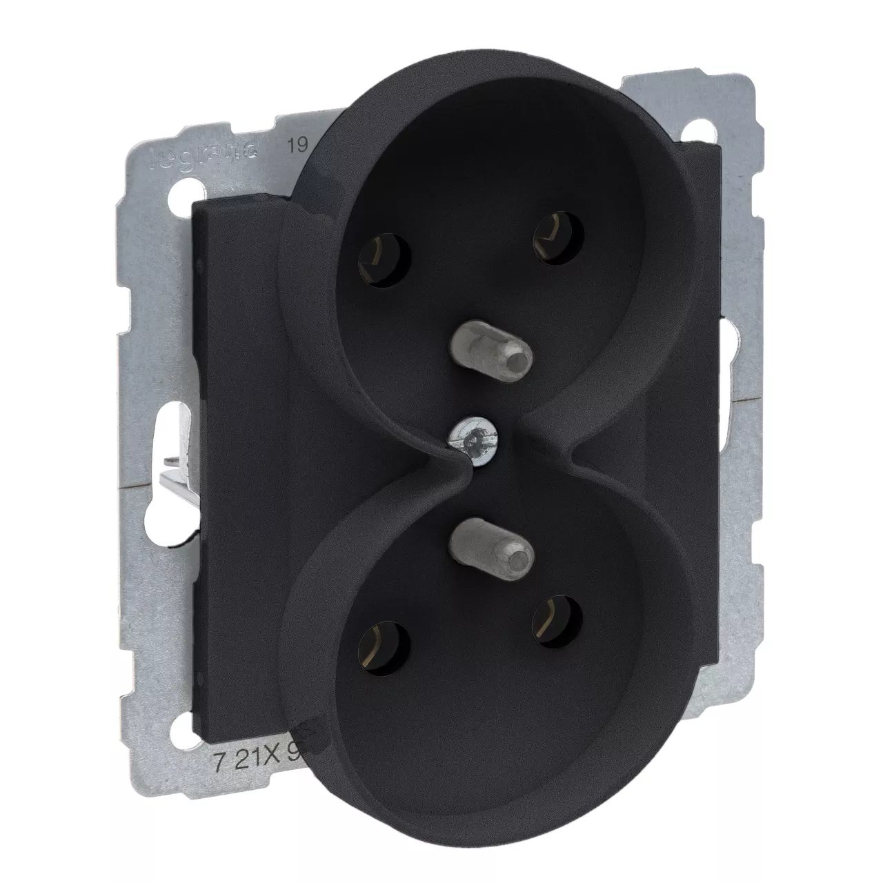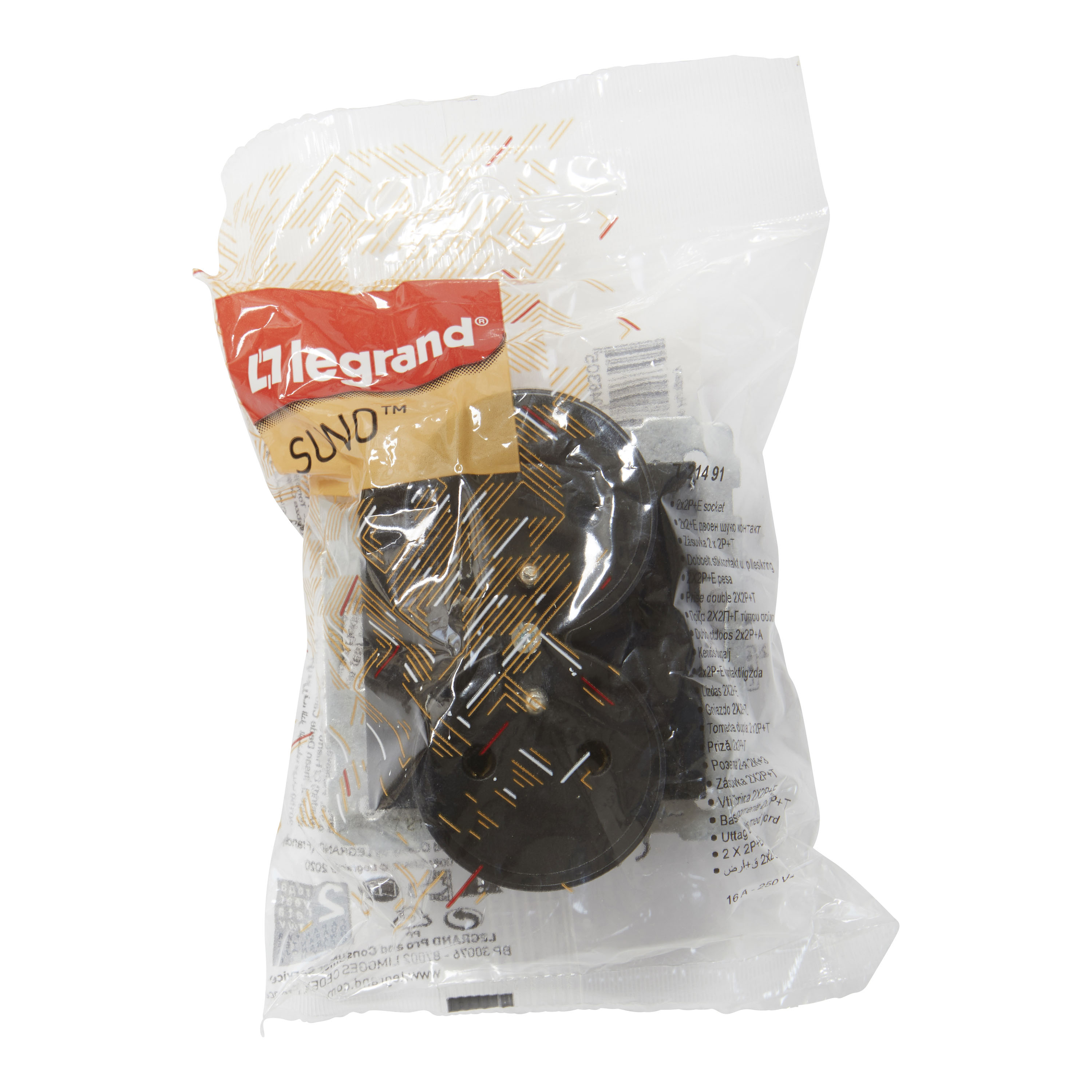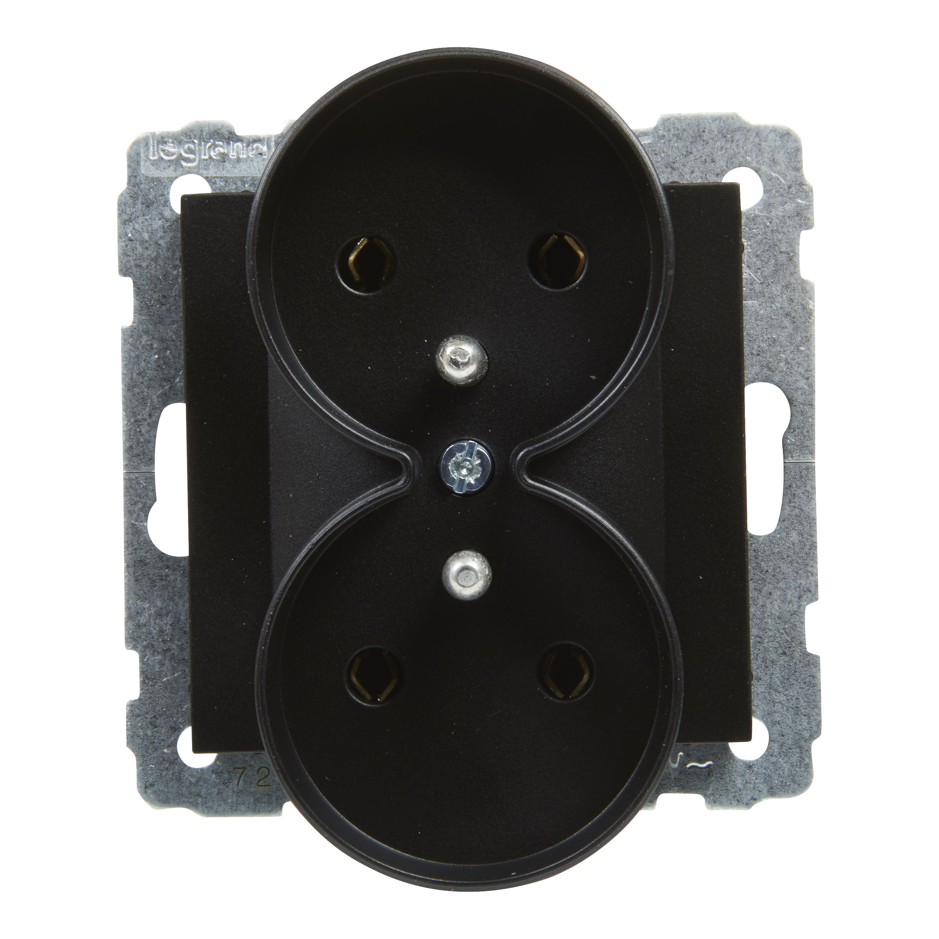 SUNO - Gniazdo 2X2P+Z - 16 A - 250 V~ - zaciski śrubowe - możliwość montażu w ramkach wielkorotynych, Czarny, Legrand