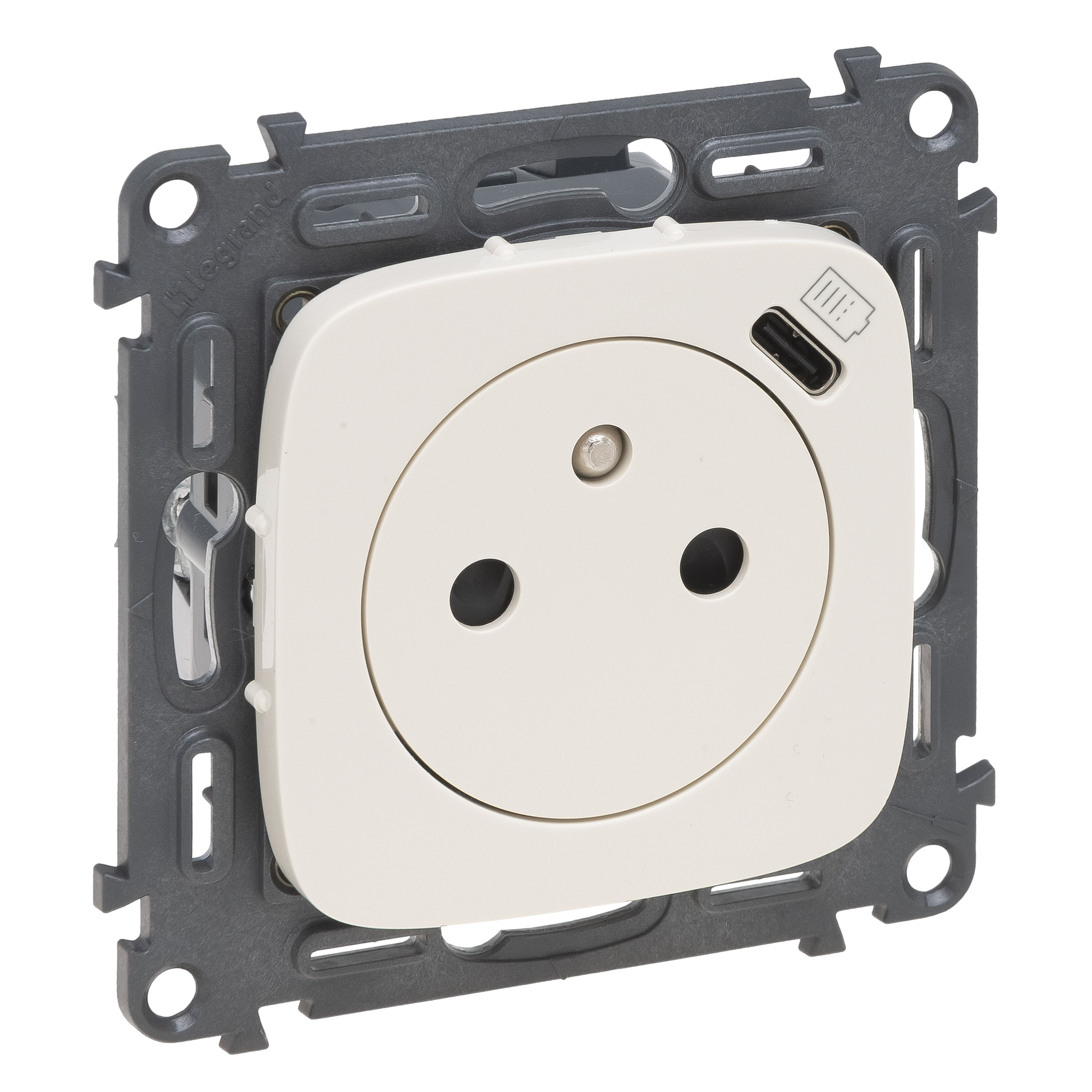 VALENA ALLURE - GNIAZDO PŁASKIE 2P+Z Z USB C KREMOWE, Legrand