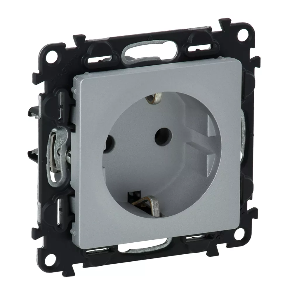 VALENA LIFE GNIAZDO 2 P+Z Z PRZESŁONĄ ALUMINIUM 16 A – 250 V~ , Legrand
