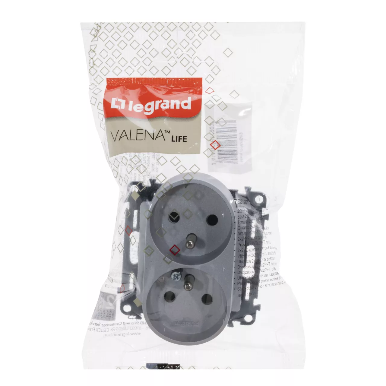 VALENA LIFE GNIAZDO 2 P+Z Z PRZESŁONĄ DO RAMEK WIELOKROTNYCH ALUMINIUM 16 A – 250 V~, Legrand