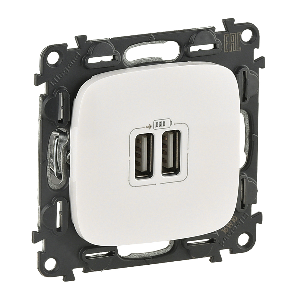 VALENA ALLURE - GNIAZDO ŁADOWANIA USB PODWÓJNE BIAŁE, Legrand