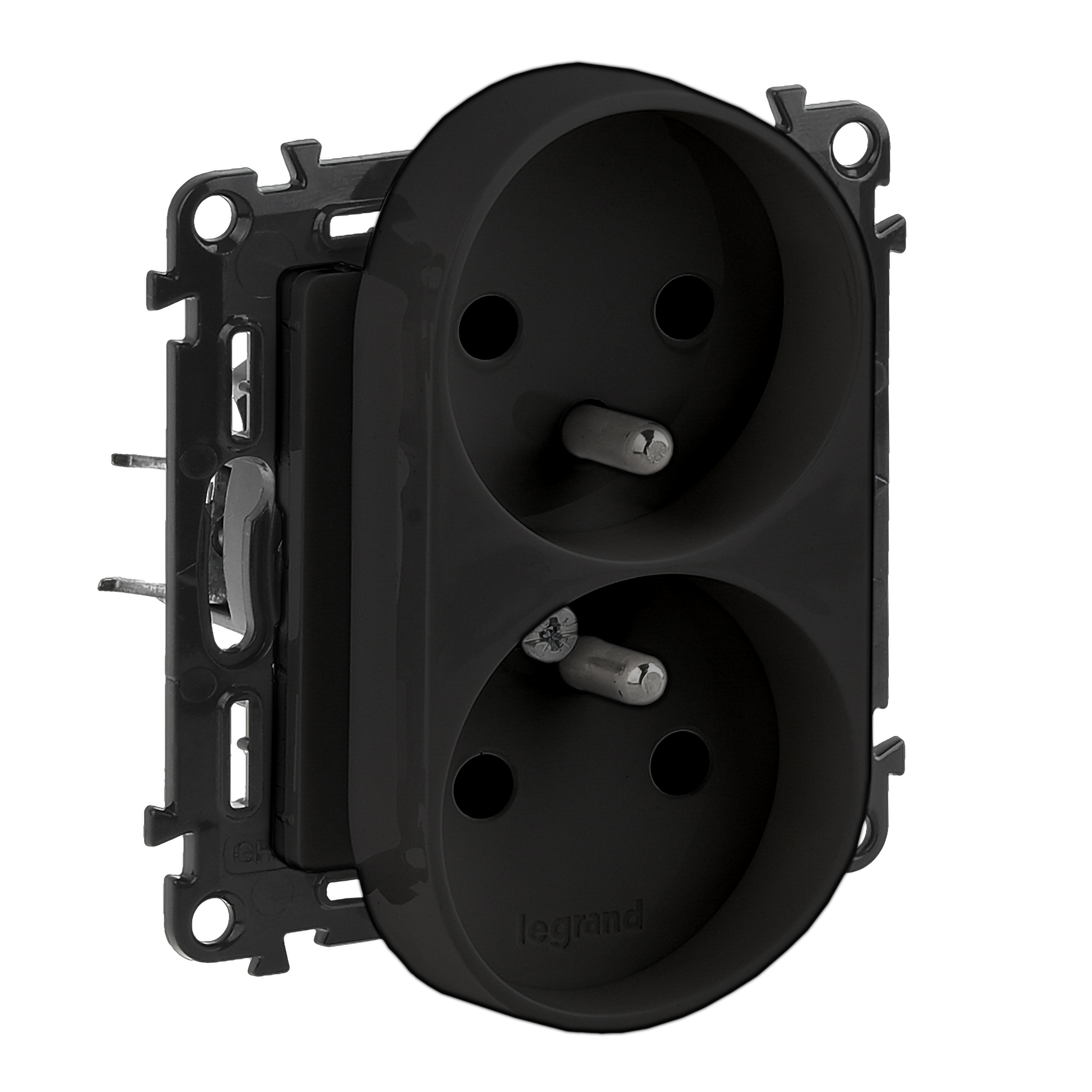Gniazdo 2 x 2P+Z z przesłoną do ramek wielokrotnych: