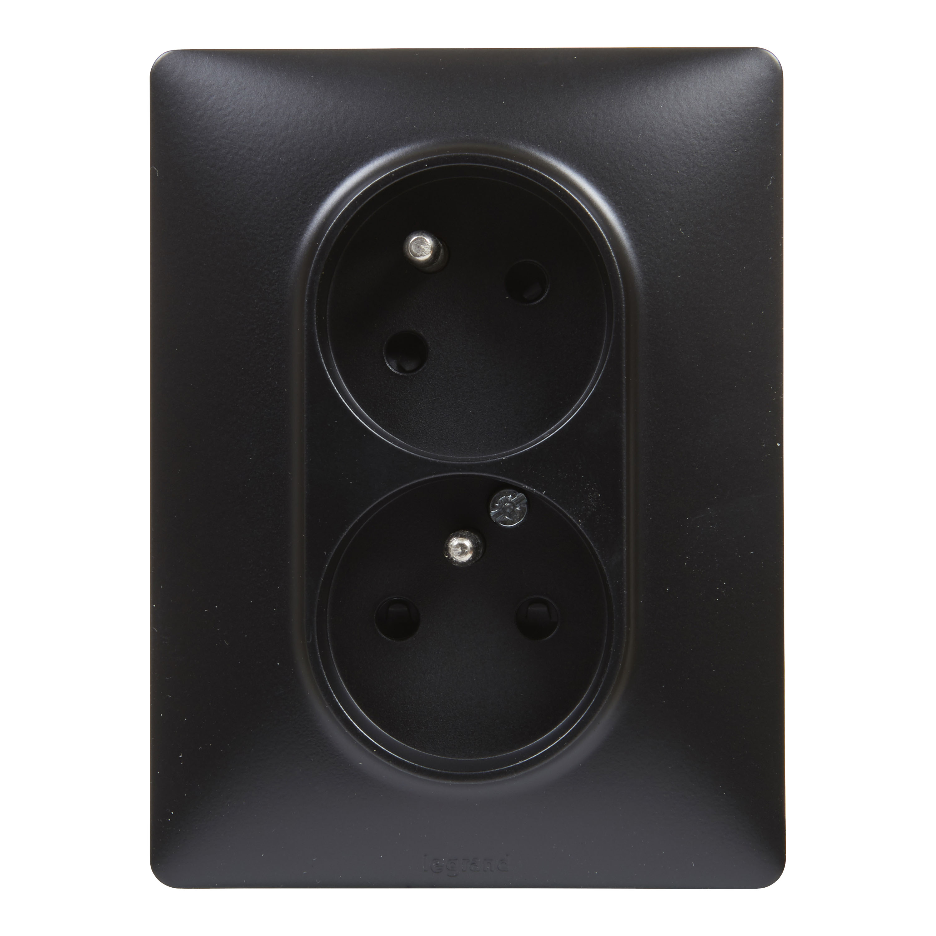 VALENA LIFE GNIAZDO 2X2P+Z TYPU MONOBLOK Z PRZESŁONĄ CZARNE 16 A – 250 V~