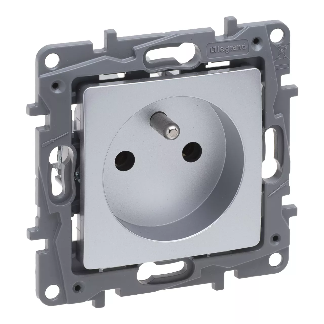 NILOE SELECTION - GNIAZDO 2P+Z 16 A - 250 V~ (BEZ PRZESŁONY, ZACISKI ŚRUBOWE) ALUMINIUM, Legrand