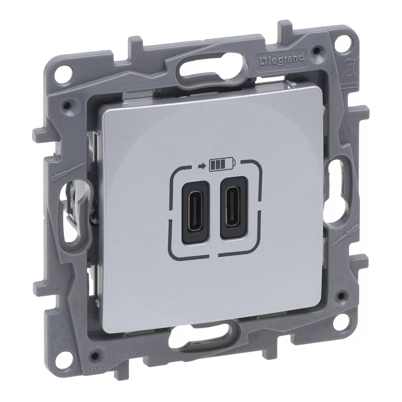 NILOE SELECTION - GNIAZDO 2 X USB TYP C+C - 3 A ALUMINIUM, Legrand