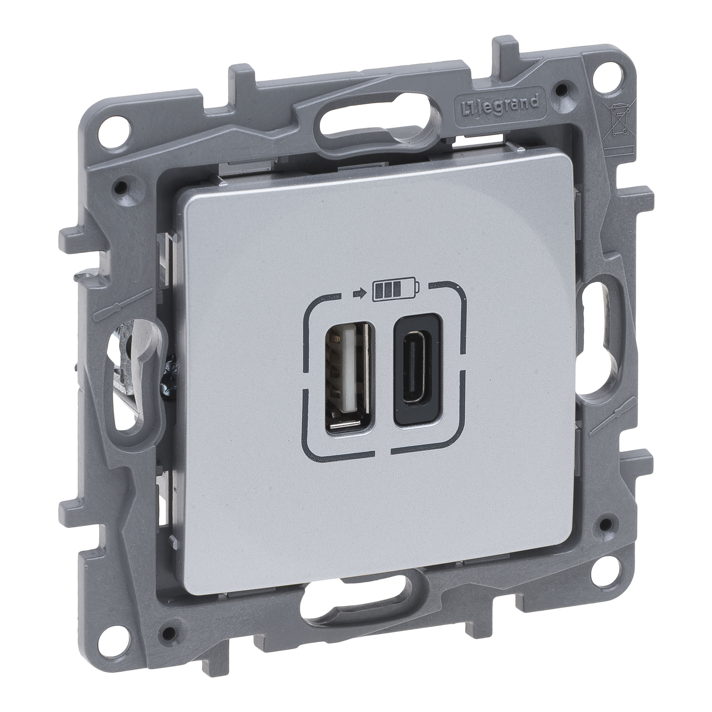 NILOE SELECTION - GNIAZDO 2 X USB TYP A+C - 3 A ALUMINIUM, Legrand