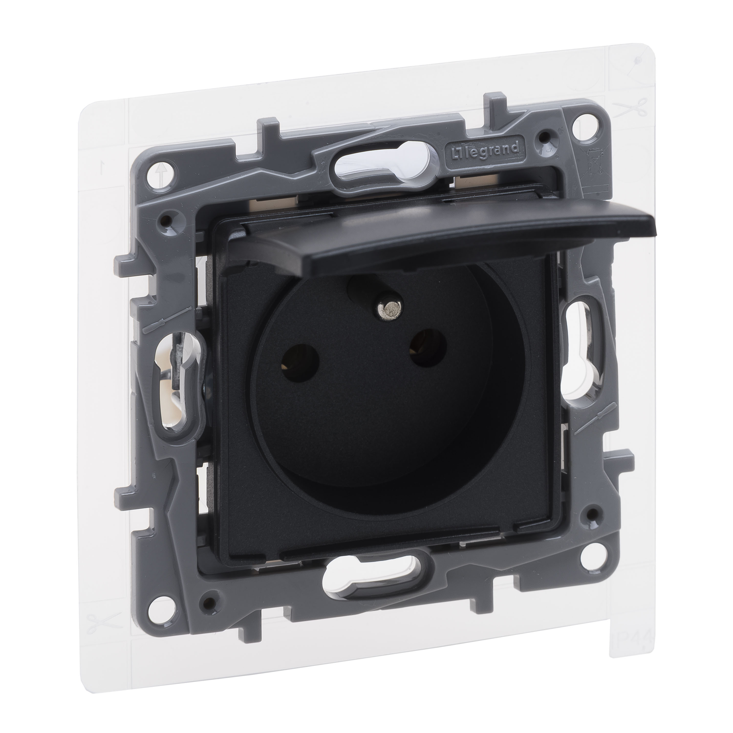 NILOE SELECTION - GNIAZDO 2P+Z - IP44 16 A - 250 V~ - BEZ PRZESŁONY, ZACISKI ŚRUBOWE ANTRACYT, Legrand