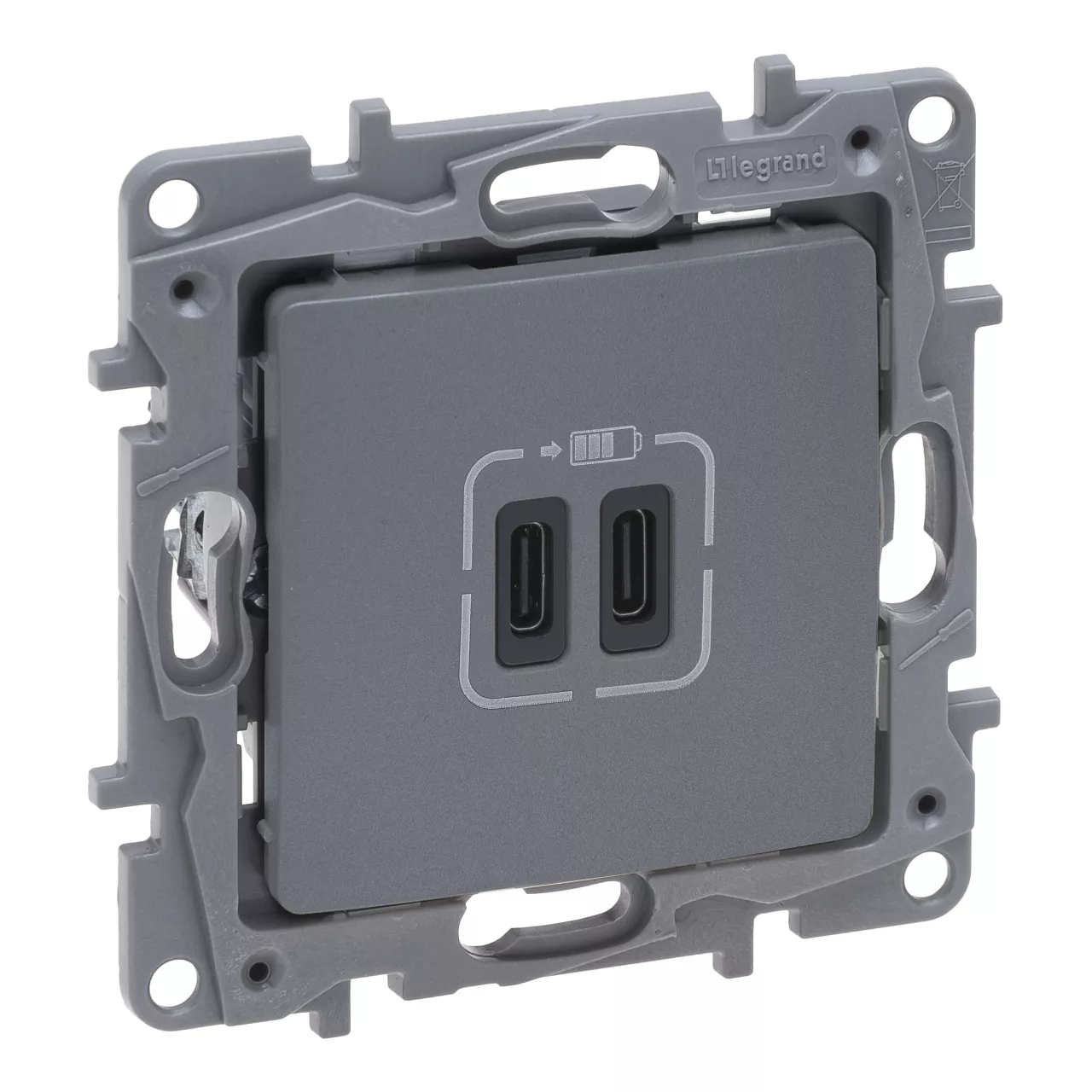 NILOE SELECTION - GNIAZDO 2 X USB TYP C+C - 3 A STAL, Legrand