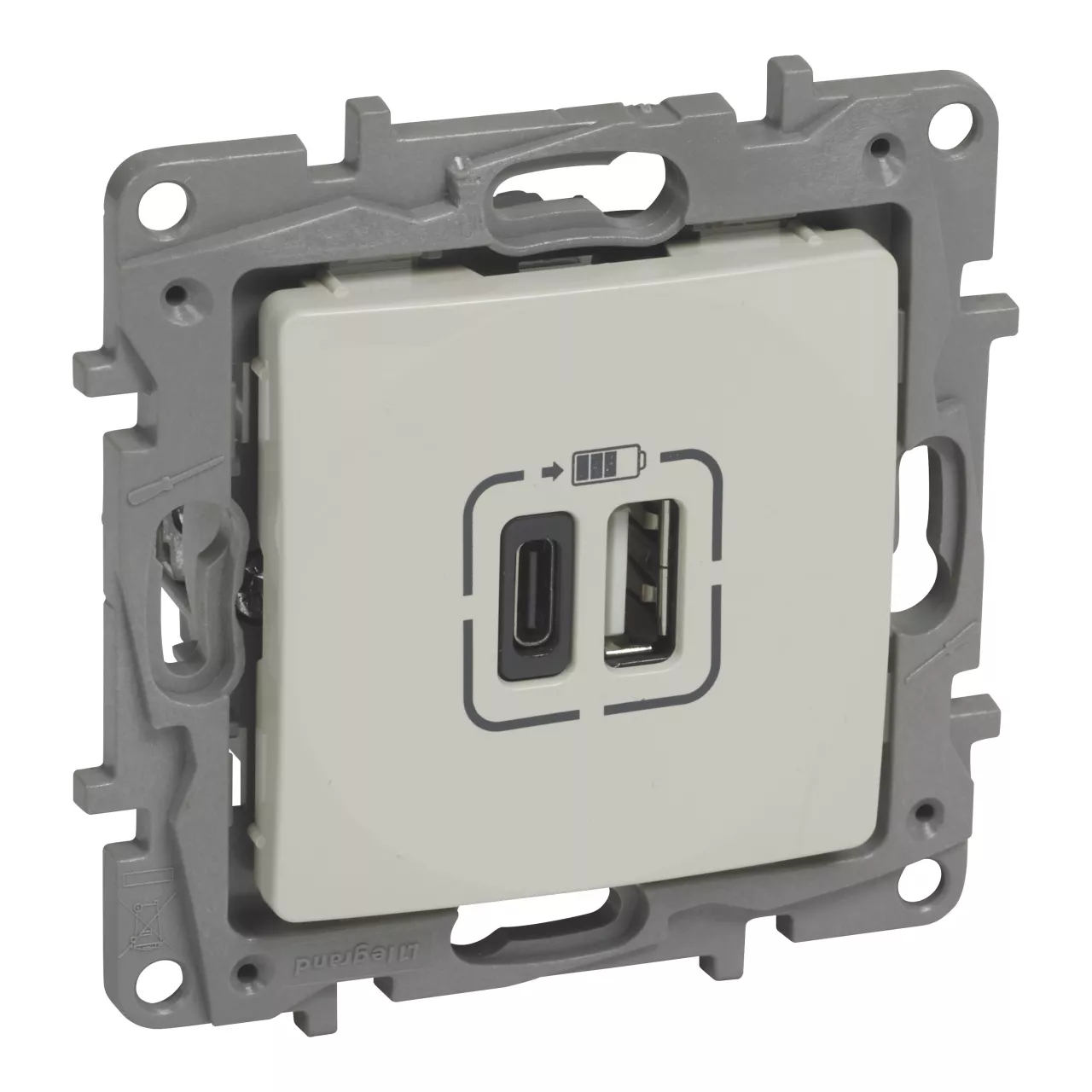 NILOE - GNIAZDO TYP USB C+C 3 A 15 W KREMOWY, Legrand