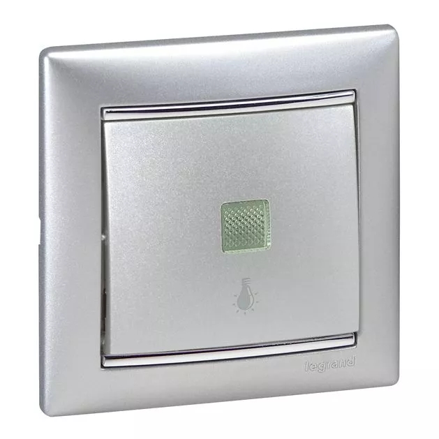 VALENA PRZYCISK JEDNOBIEGUNOWY PODŚWIETLANY Z SYMBOLEM LAMPY 10A-250V~ ALUMINIUM, Legrand