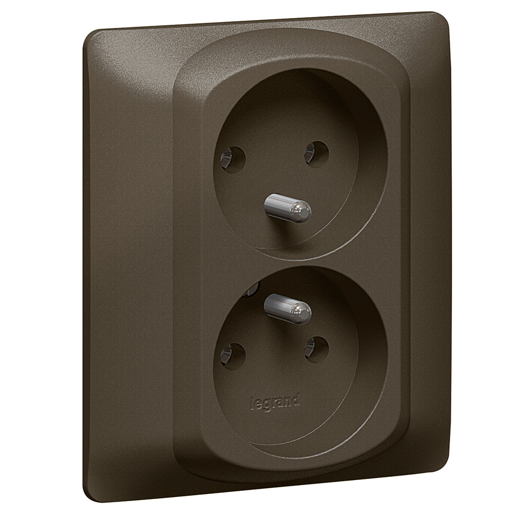 SISTENA LIFE GNIAZDO PODWÓJNE 2X2P+Z Z PRZESŁONAMI CHOCO KOMPLETNE 16A-250V~, Legrand