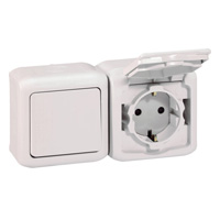 FORIX IP44 - ŁĄCZNIK SCHODOWY 10 AX + GNIAZDO 2P+Z 16 A - 250 V BIAŁE, Legrand