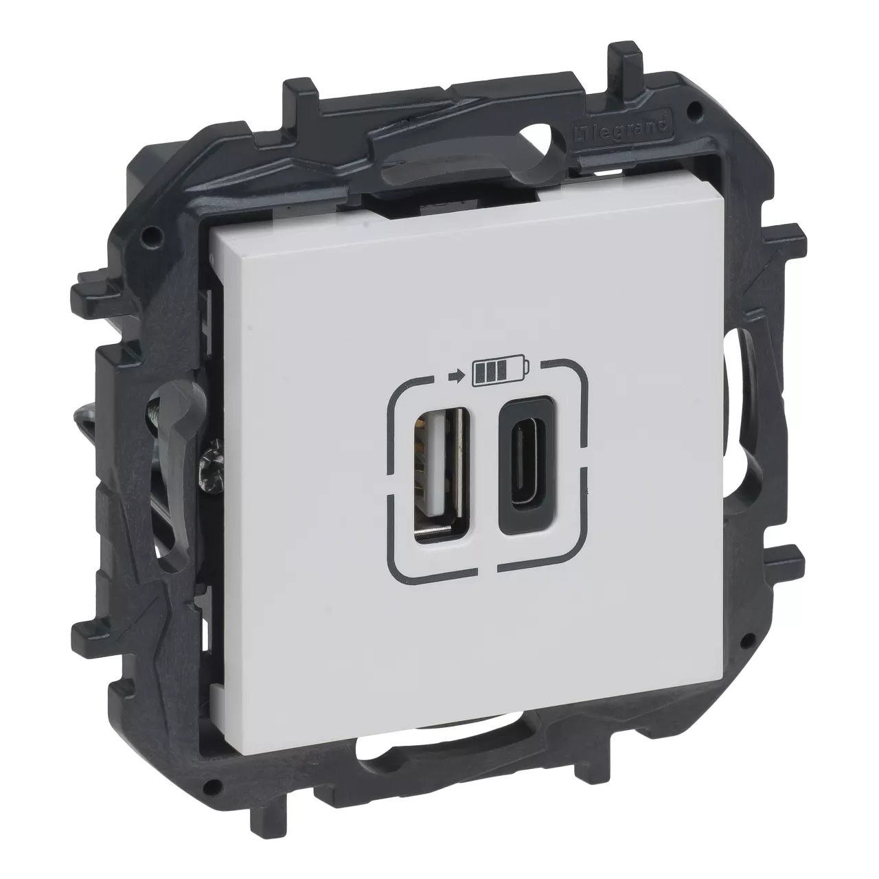 NILOE STEP- GNIAZDO USB 3A TYP A+C MECHANIZM Z PLAKIETKĄ - KOLOR BIAŁY