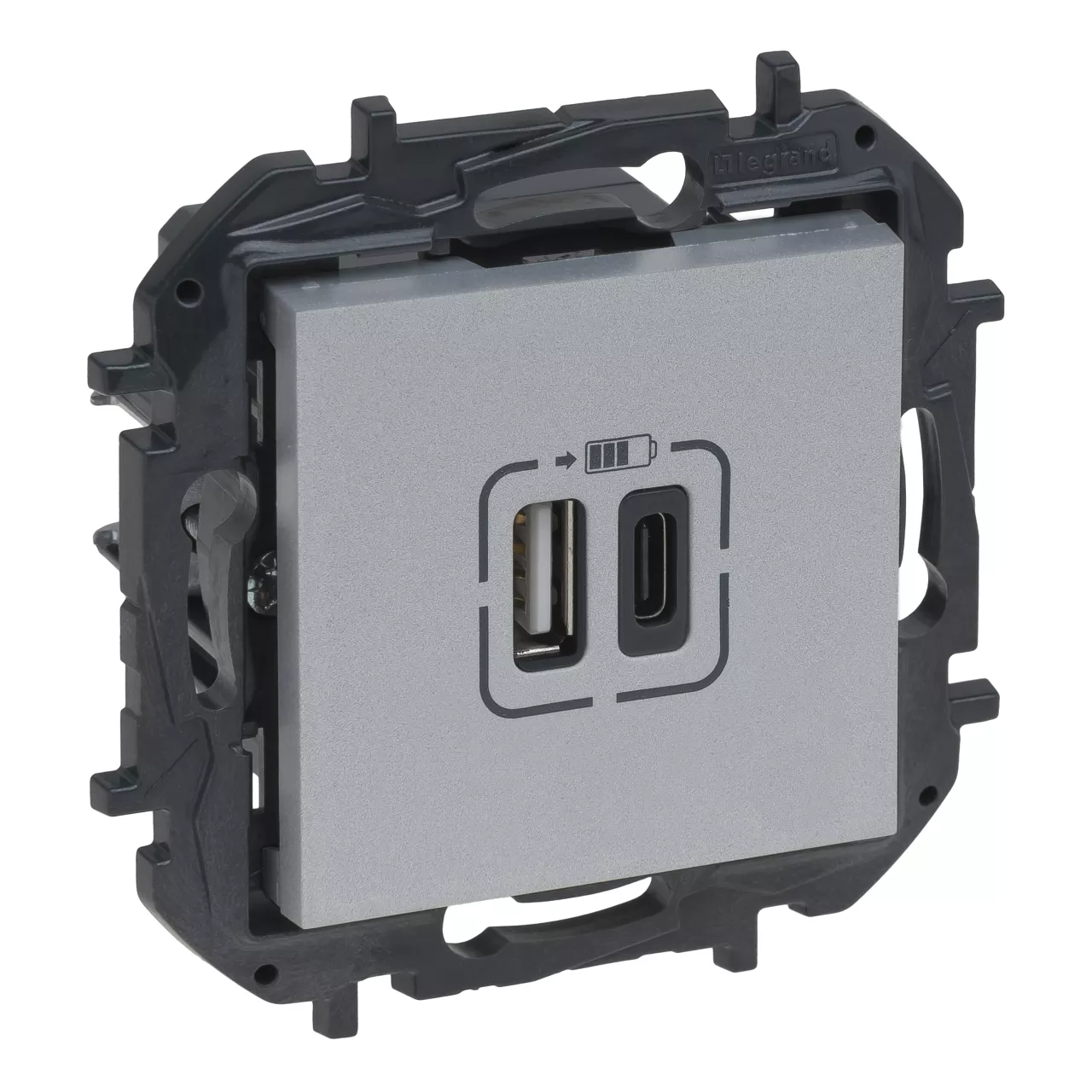 NILOE STEP- GNIAZDO USB 3A TYP A+C MECHANIZM Z PLAKIETKĄ - KOLOR ALUMINIUM