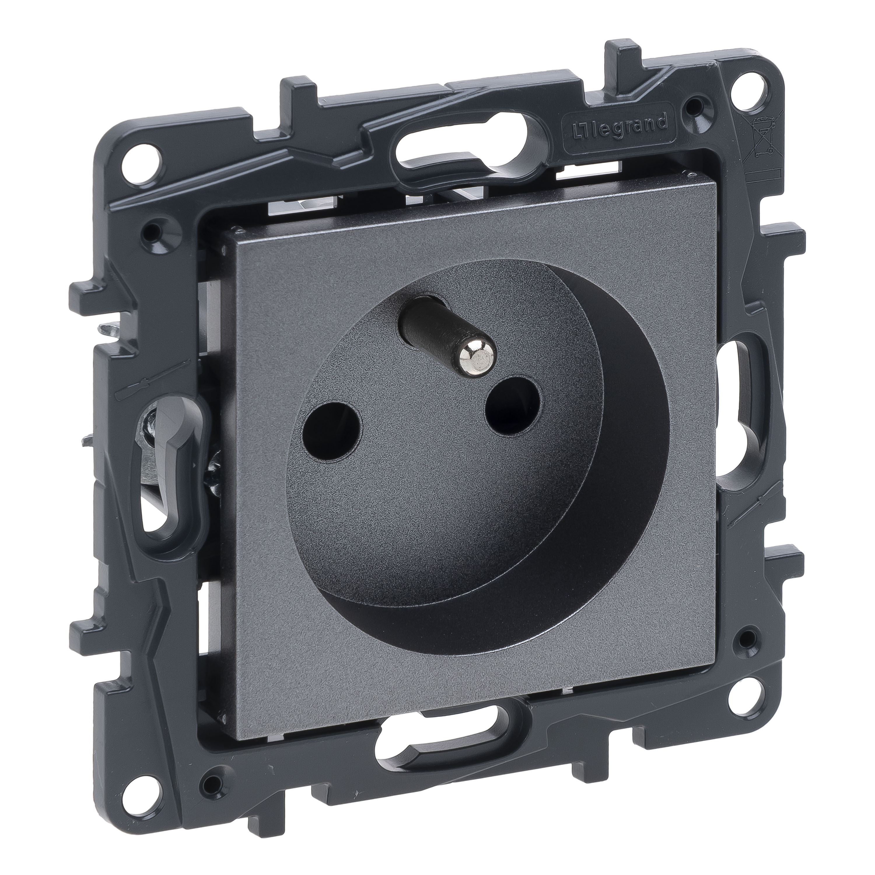 Niloe Step - gniazdo zasilające 2P+Z IP44, zaciski automatyczne, bez przesłony- kolor stalowy, Legrand