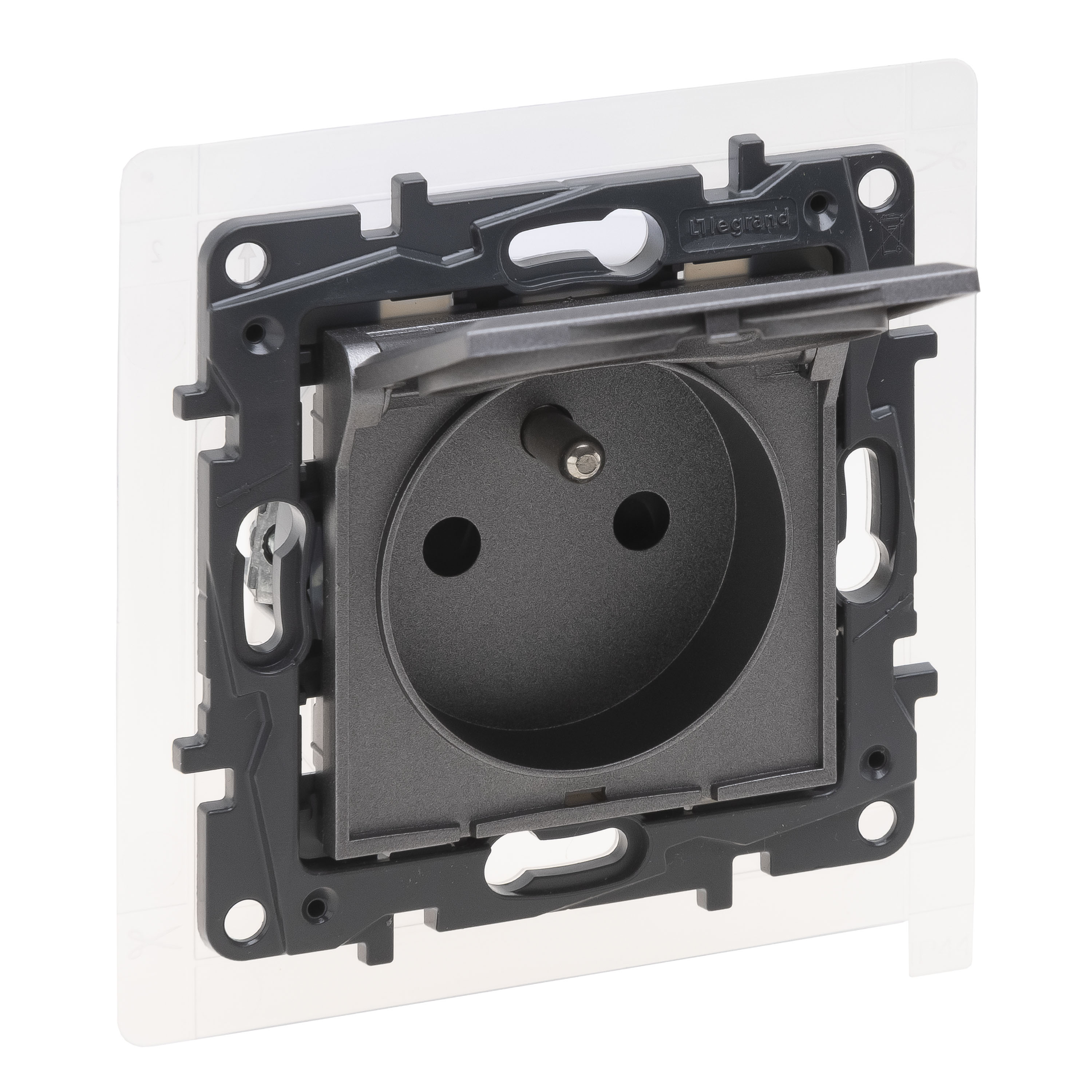 Niloe Step - gniazdo zasilające 2P+Z IP44, zaciski automatyczne, z przesłoną- kolor stalowy, Legrand