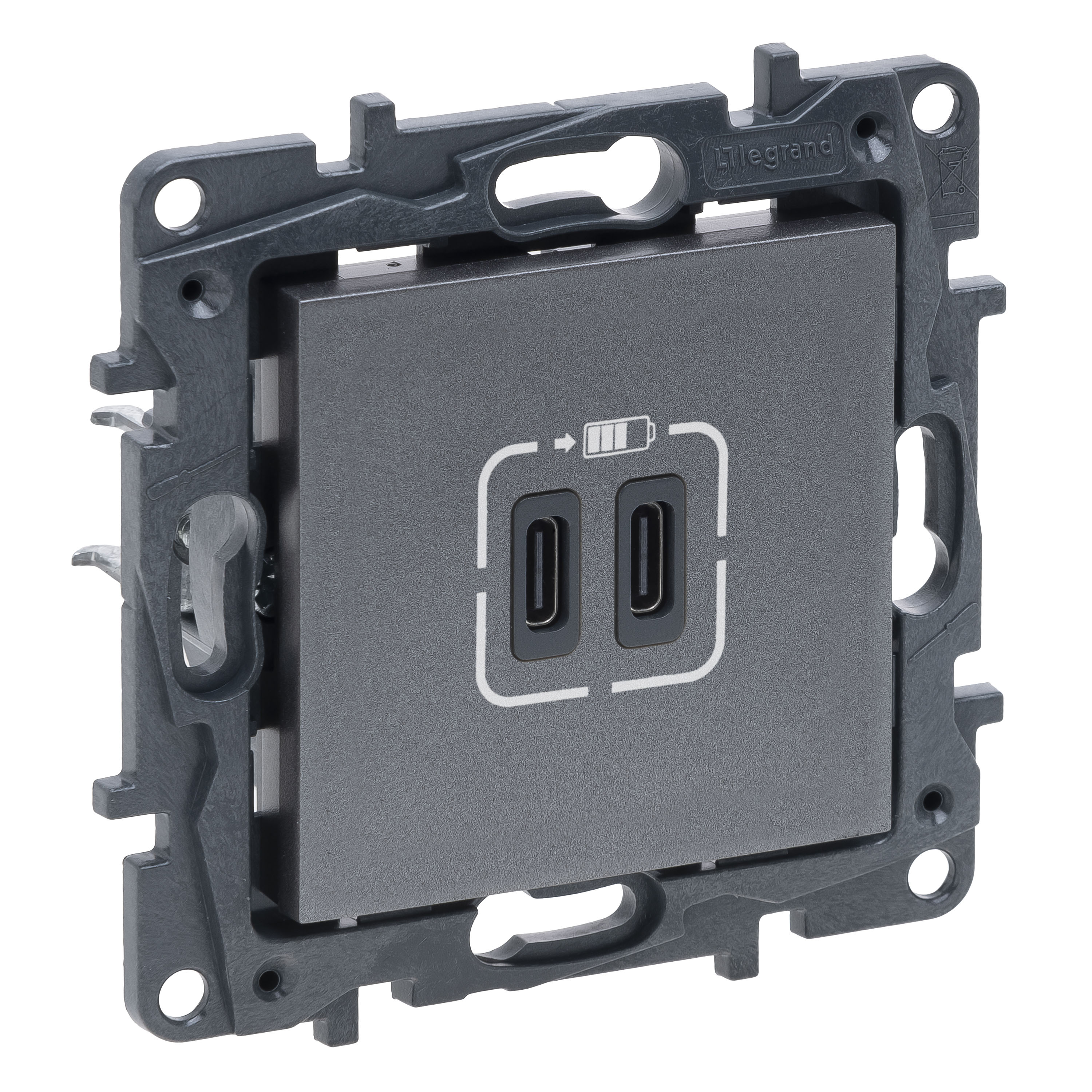 Niloe Step - gniazdo podwójne USB 2xUSB C, 3 A- kolor stalowy, Legrand