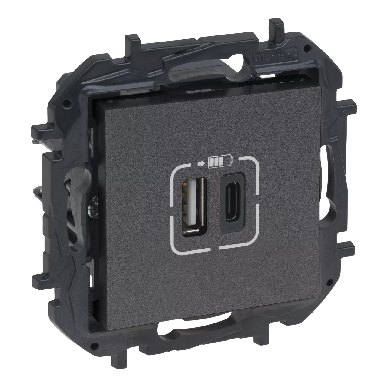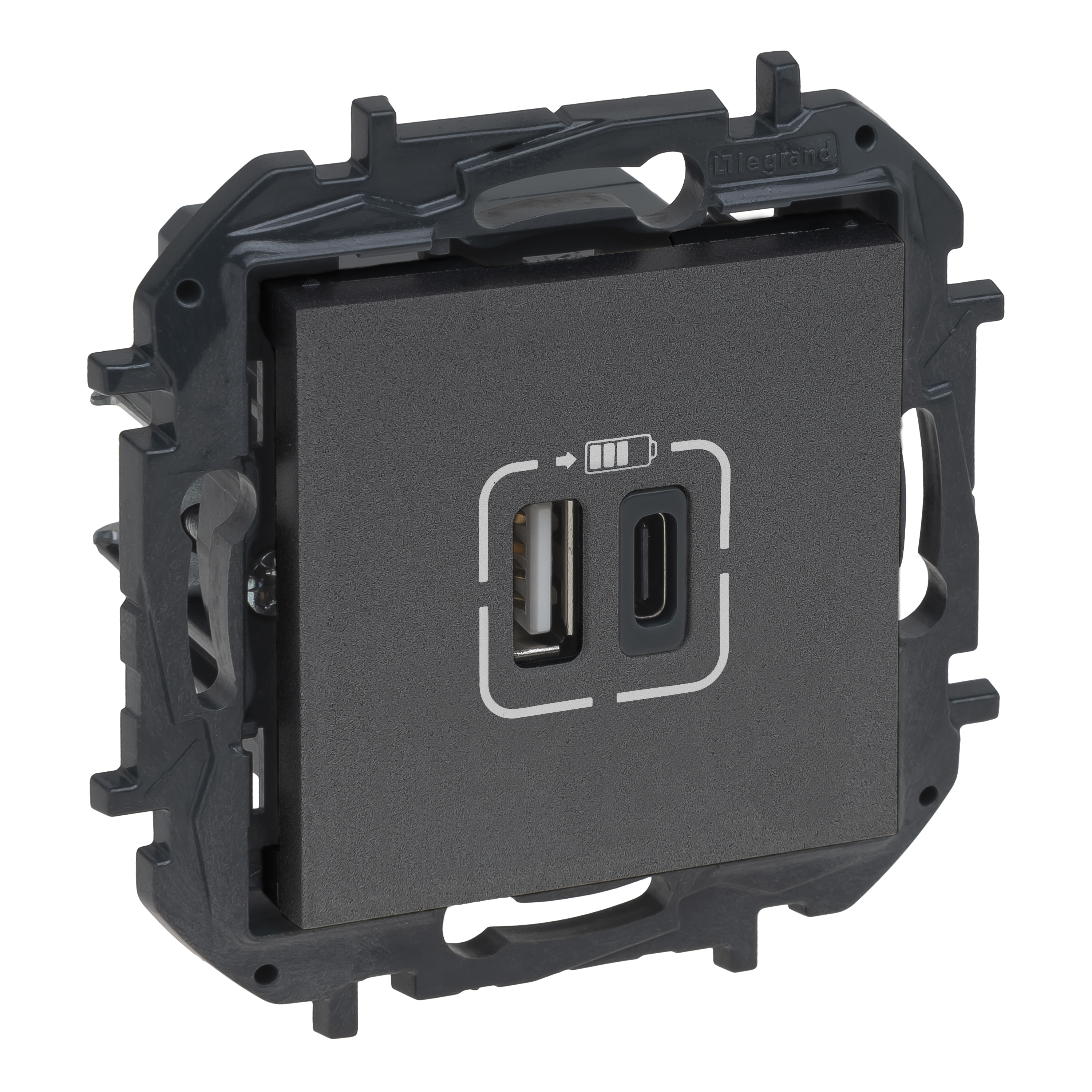NILOE STEP- GNIAZDO USB 3A TYP A+C MECHANIZM Z PLAKIETKĄ - KOLOR STALOWY