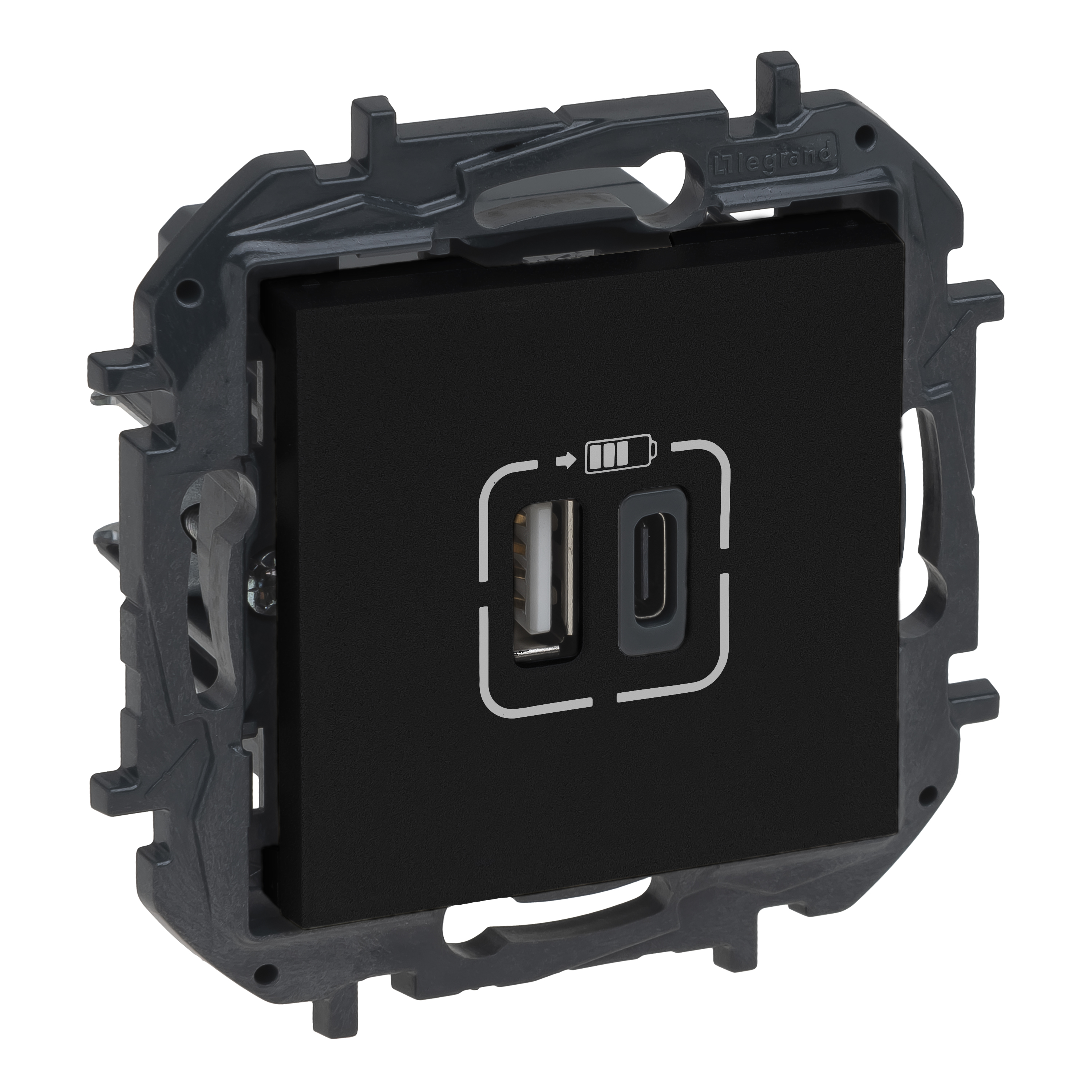 NILOE STEP- GNIAZDO USB 3A TYP A+C MECHANIZM Z PLAKIETKĄ - KOLOR CZARNY