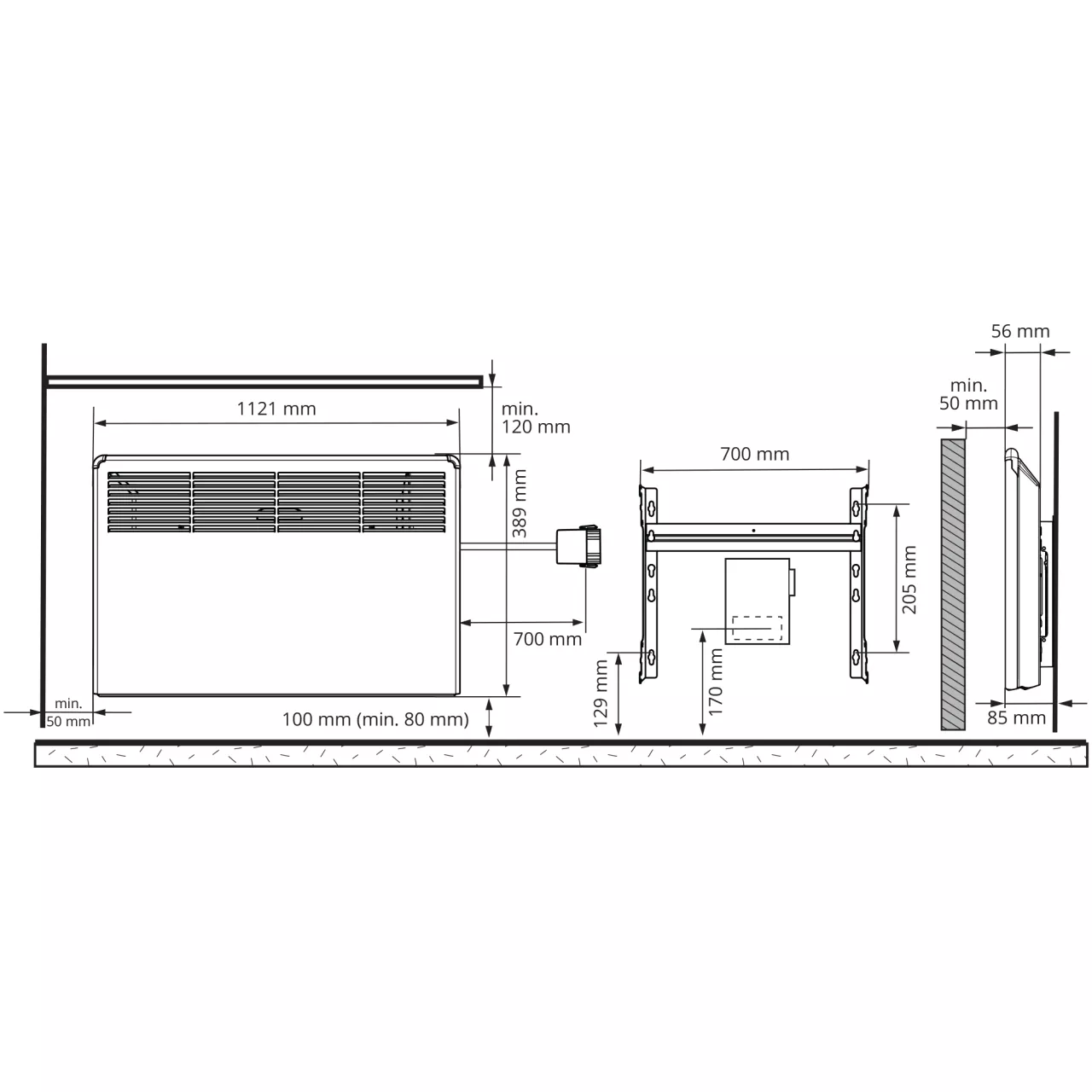 Grzejnik BETA15-BT-EB-IP24 z programatorem Bluetooth, puszką i wspor. mont.IP24, wymiary: 389x1121 mm, Moc: 1500W