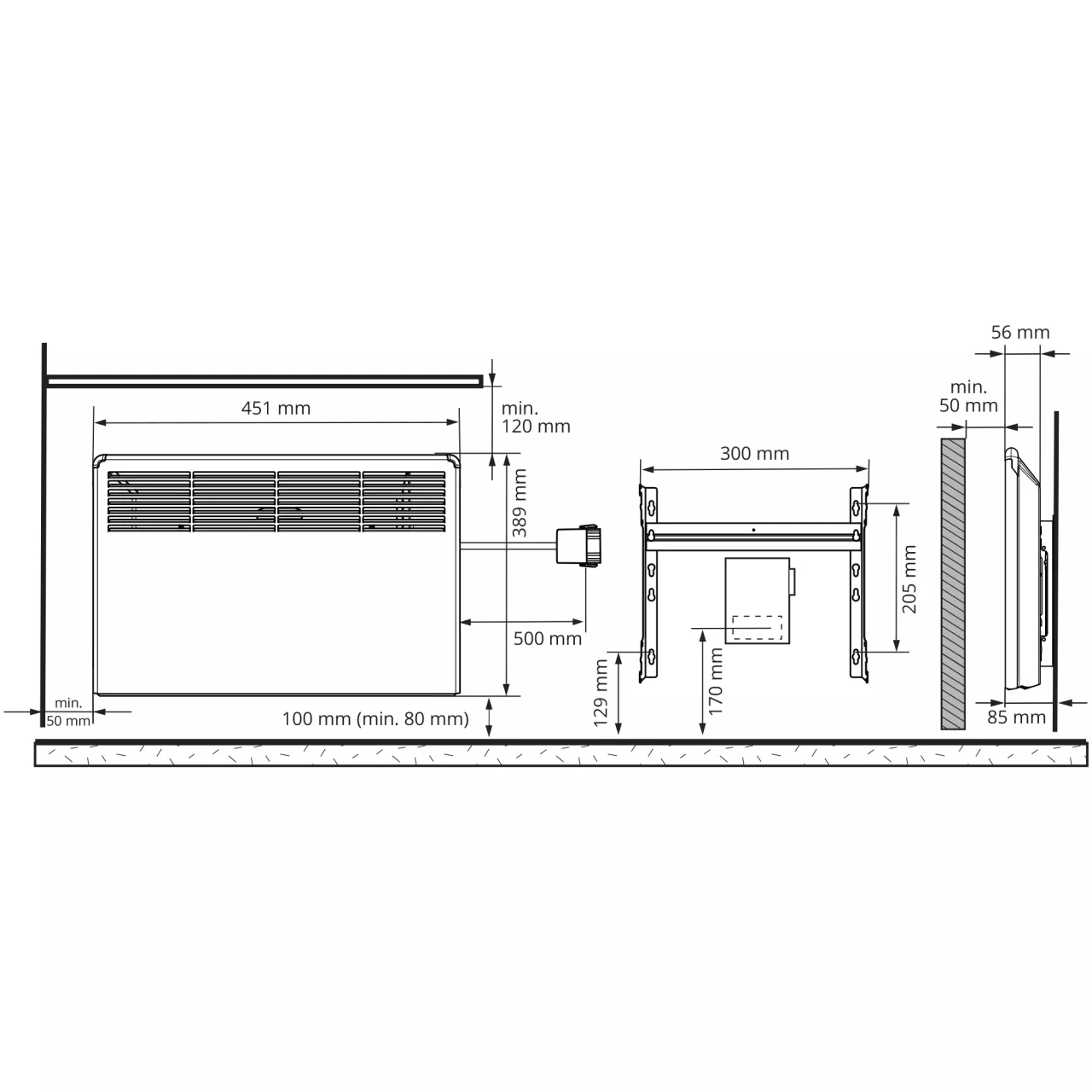 Grzejnik BETA2-BT-EB-IP24 z programatorem Bluetooth, puszką i wspor. mont. IP24, wymiary: 389x451 mm, Moc: 250W