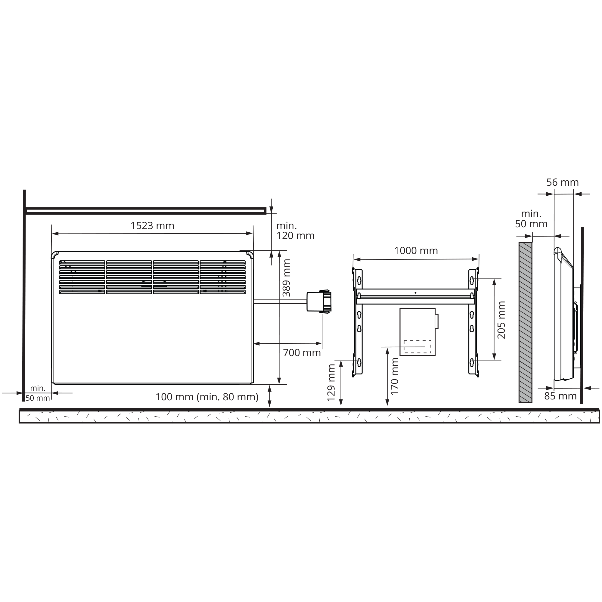 Grzejnik BETA20-BT-EB-IP24 z programatorem Bluetooth, puszką i wspor. mont.IP24, wymiary: 389x1523 mm, Moc: 2000W