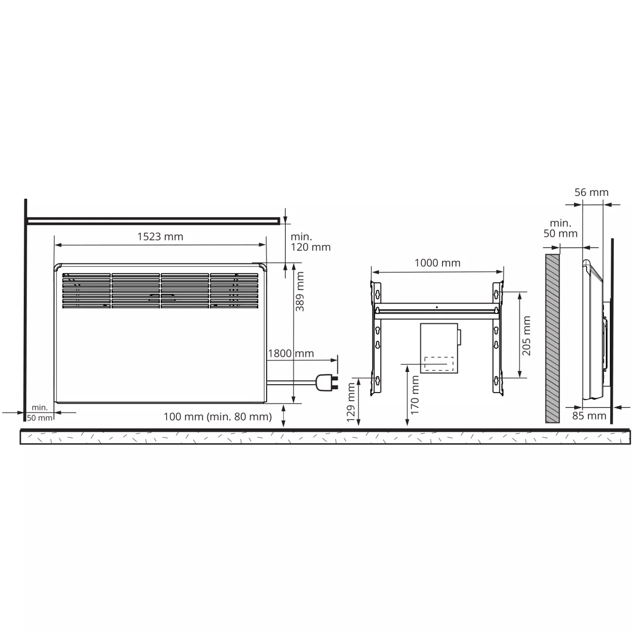 Grzejnik BETA20-BT-EP 2000W P 39x152 z programatorem Bluetooth, wtyczką i wspor. mont.