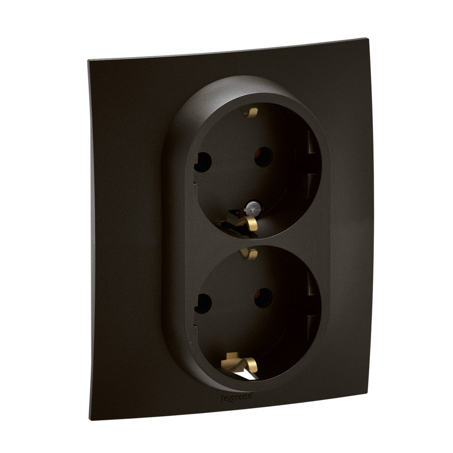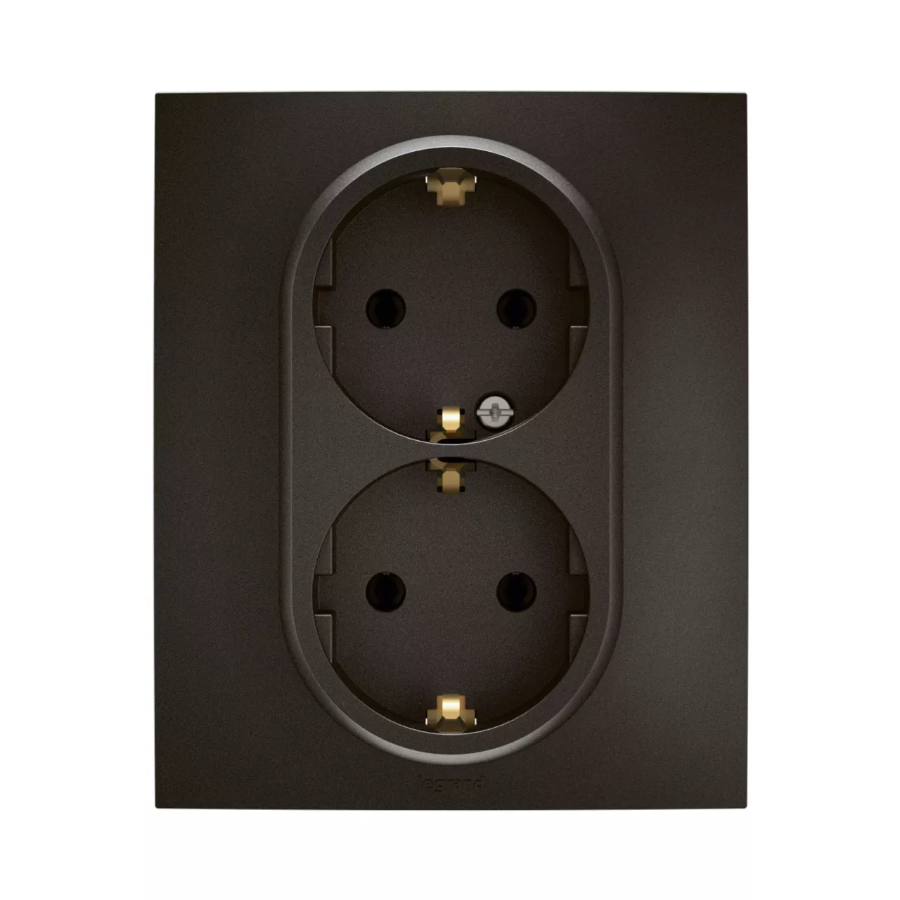 NOWE NILOE - GNIAZDO SCHUKO 2X2P+Z MONOBLOK ZACISKI ŚRUBOWE 16A - 250V~ CZARNE
