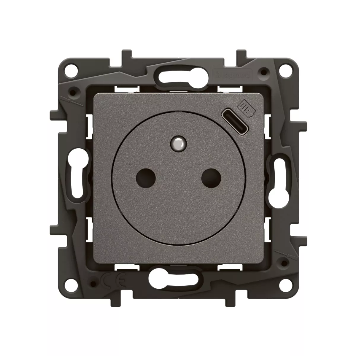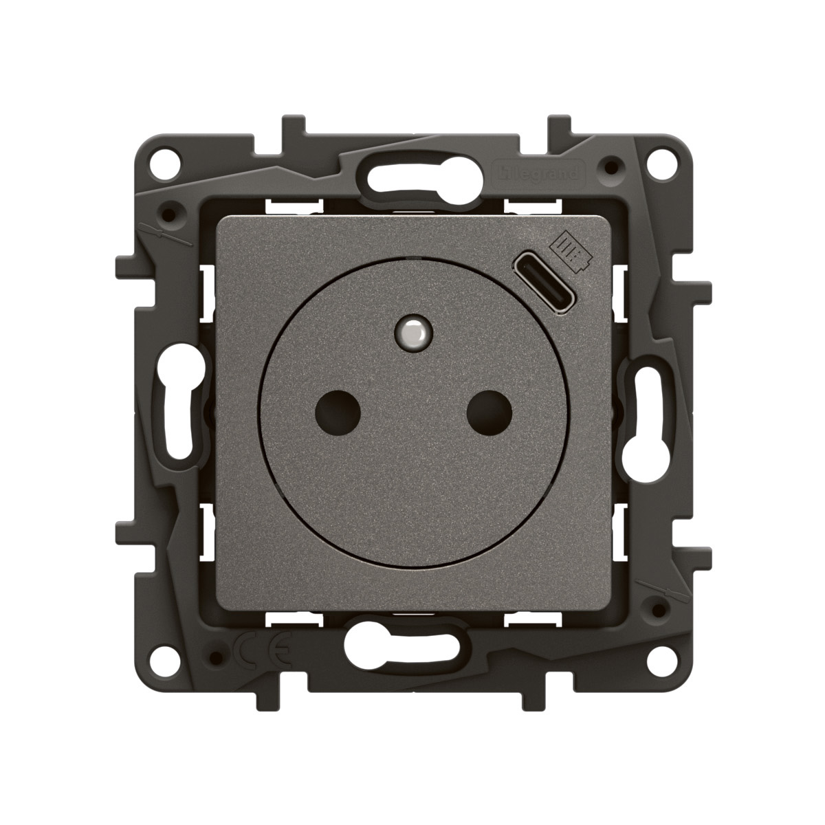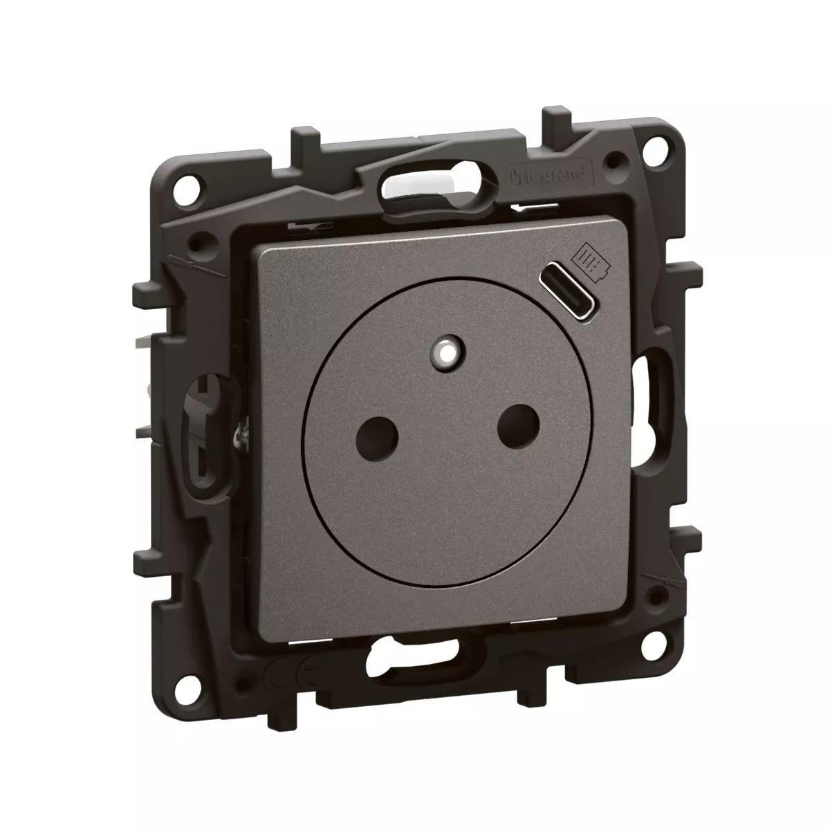 NOWE NILOE - GNIAZDO PŁASKIE 2P+Z Z USB C 16 A - 250 V~ STALOWE
