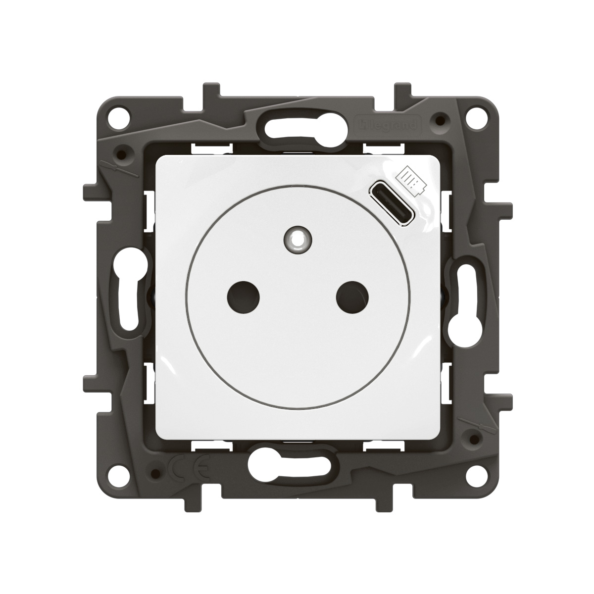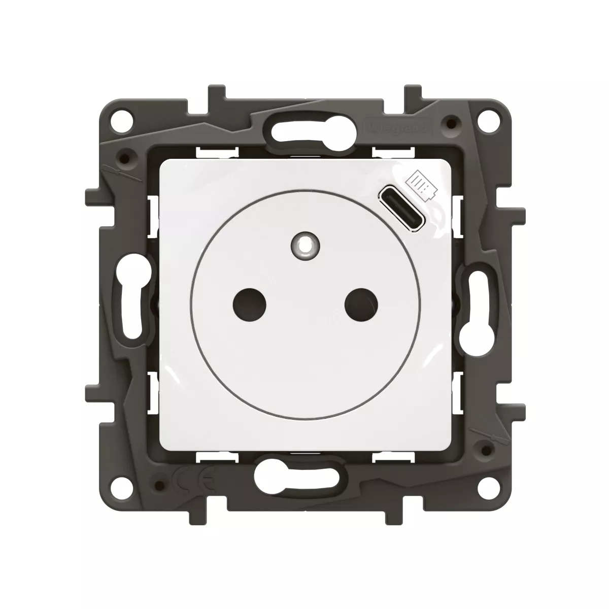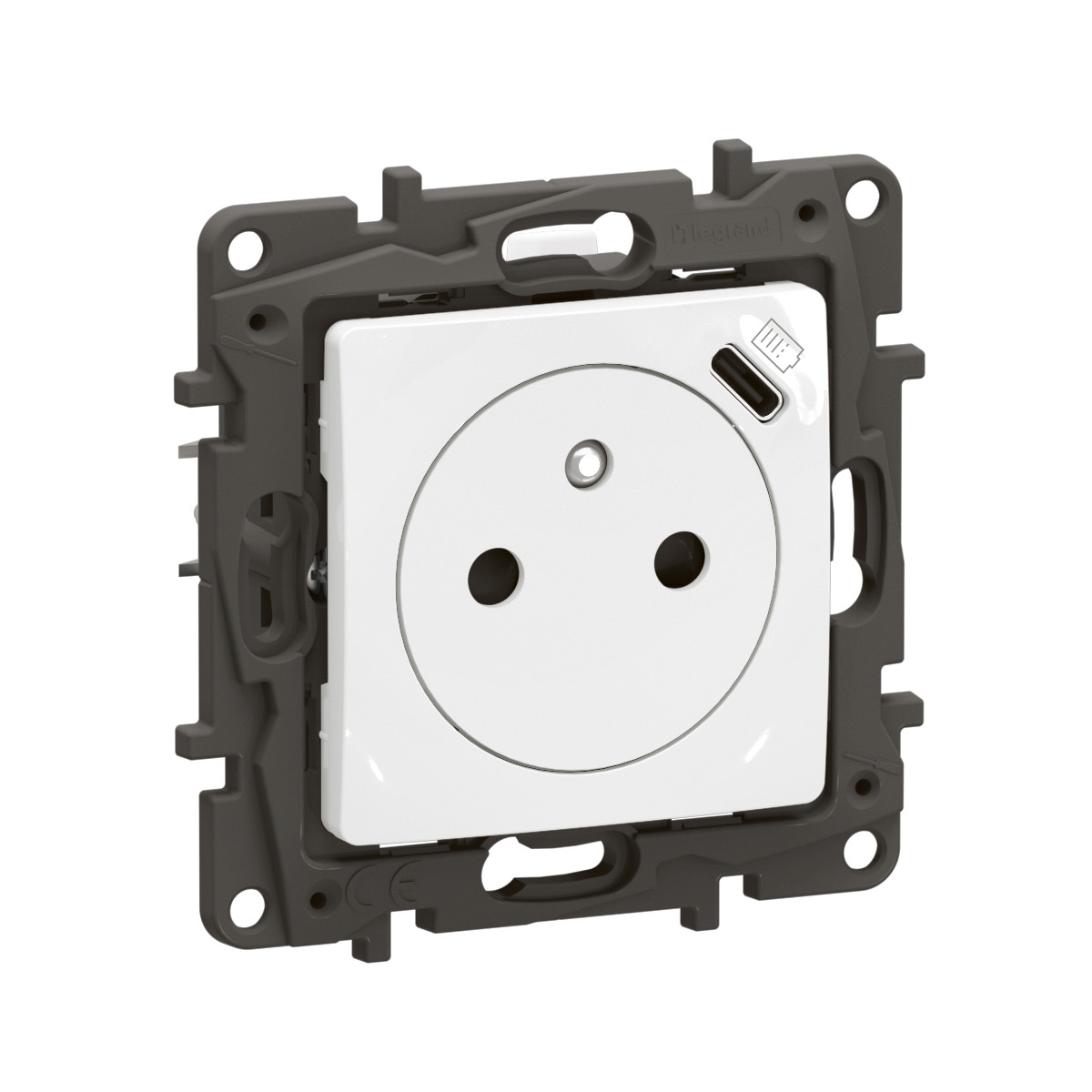 NOWE NILOE - GNIAZDO PŁASKIE 2P+Z Z USB C 16 A - 250 V~ BIAŁE