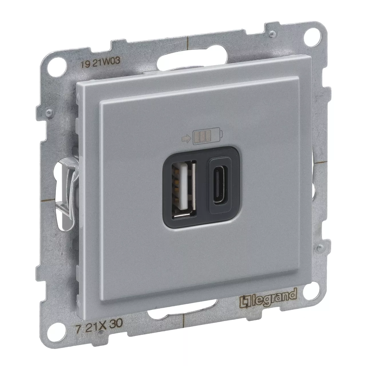 SUNO - Gniazdo USB typ A + C - 5 V - 3 A, Aluminium, 721330, Legrand