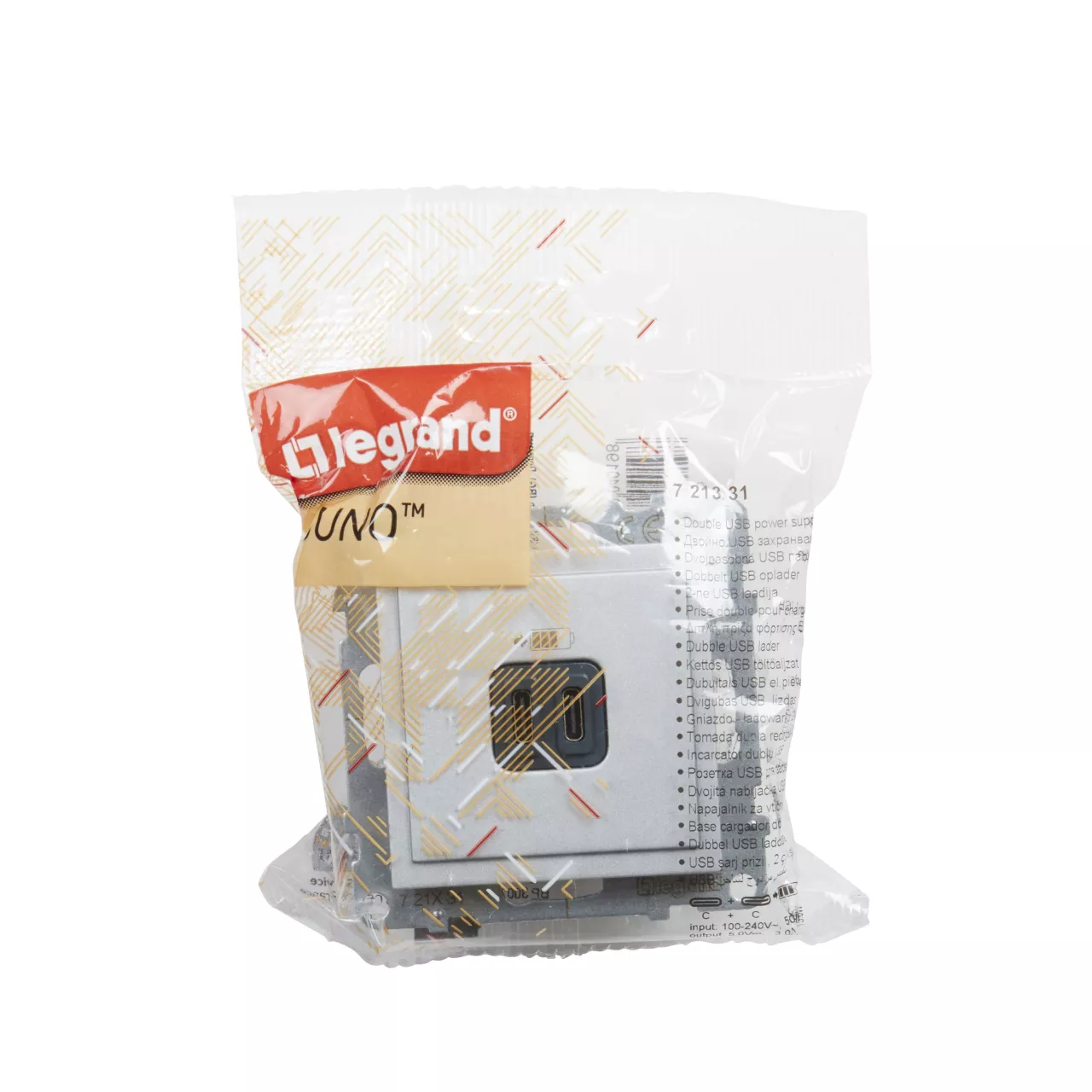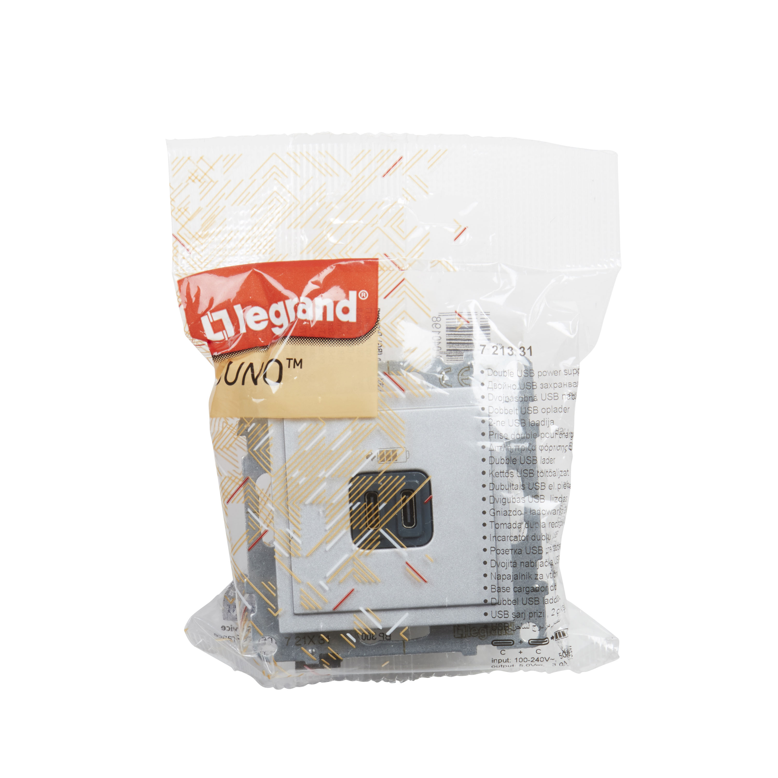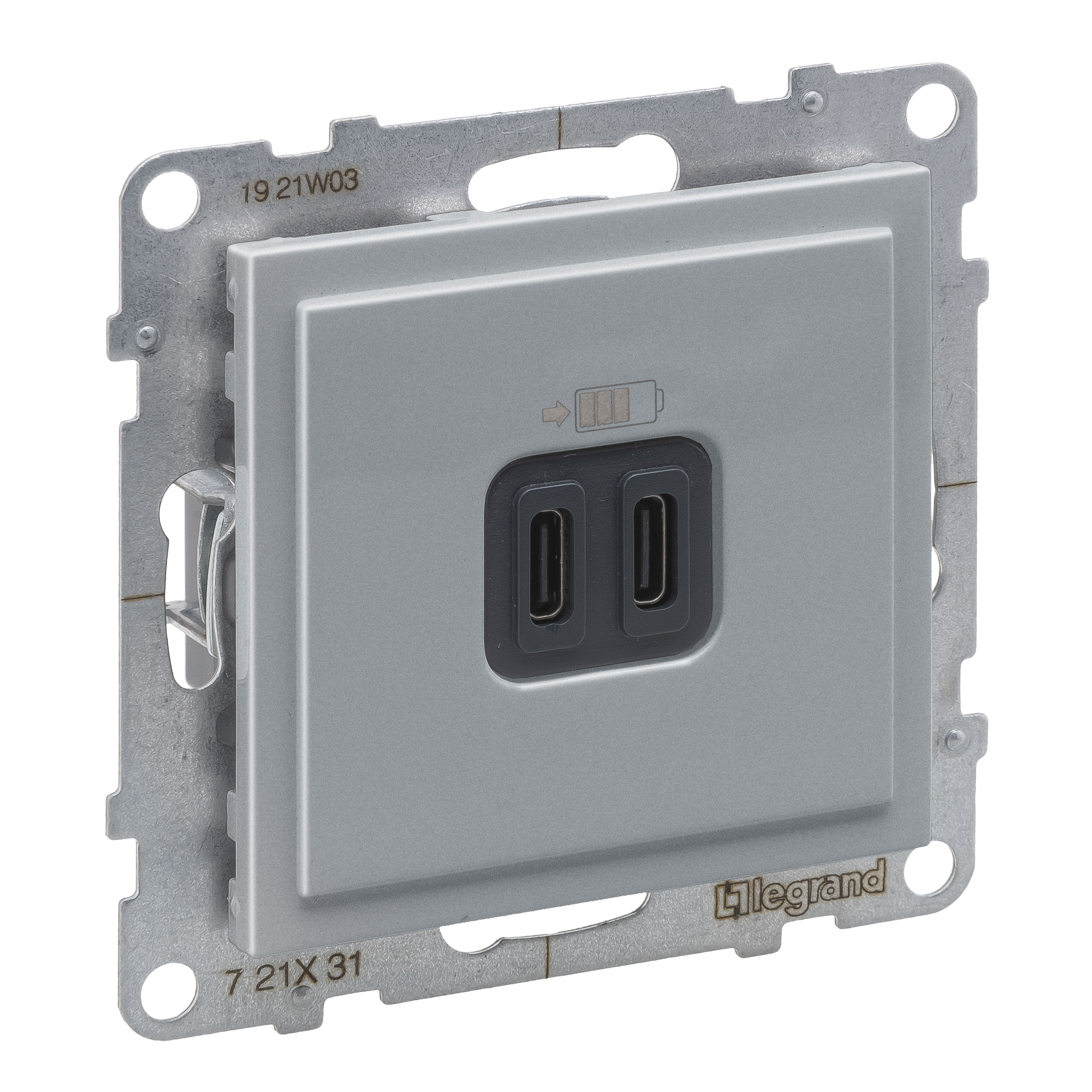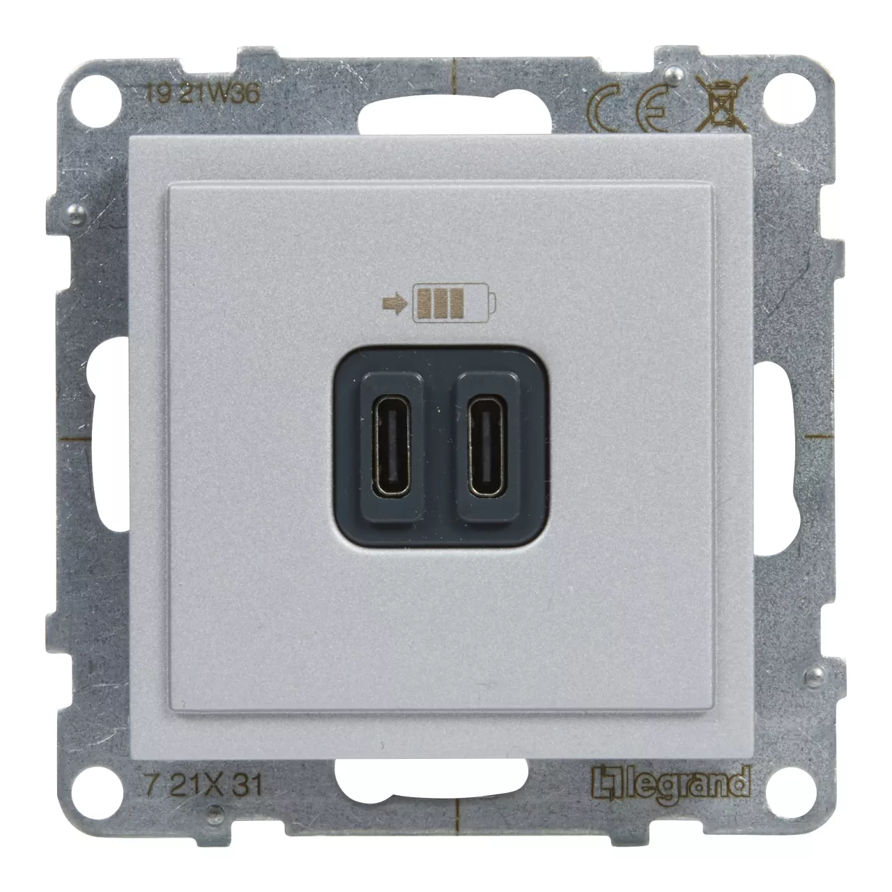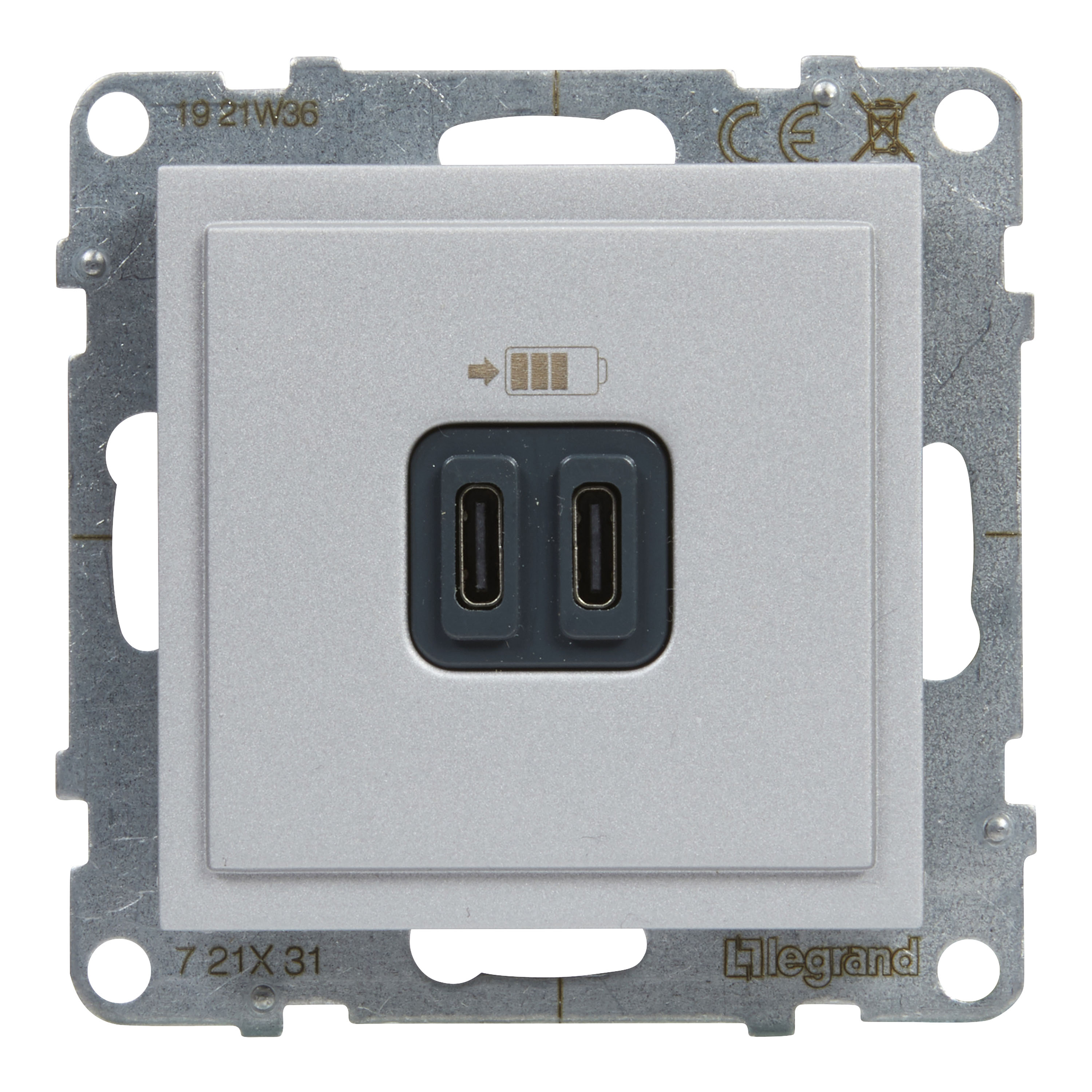 SUNO - Gniazdo USB typ C + C - 5 V - 3 A, Aluminium, 721331, Legrand