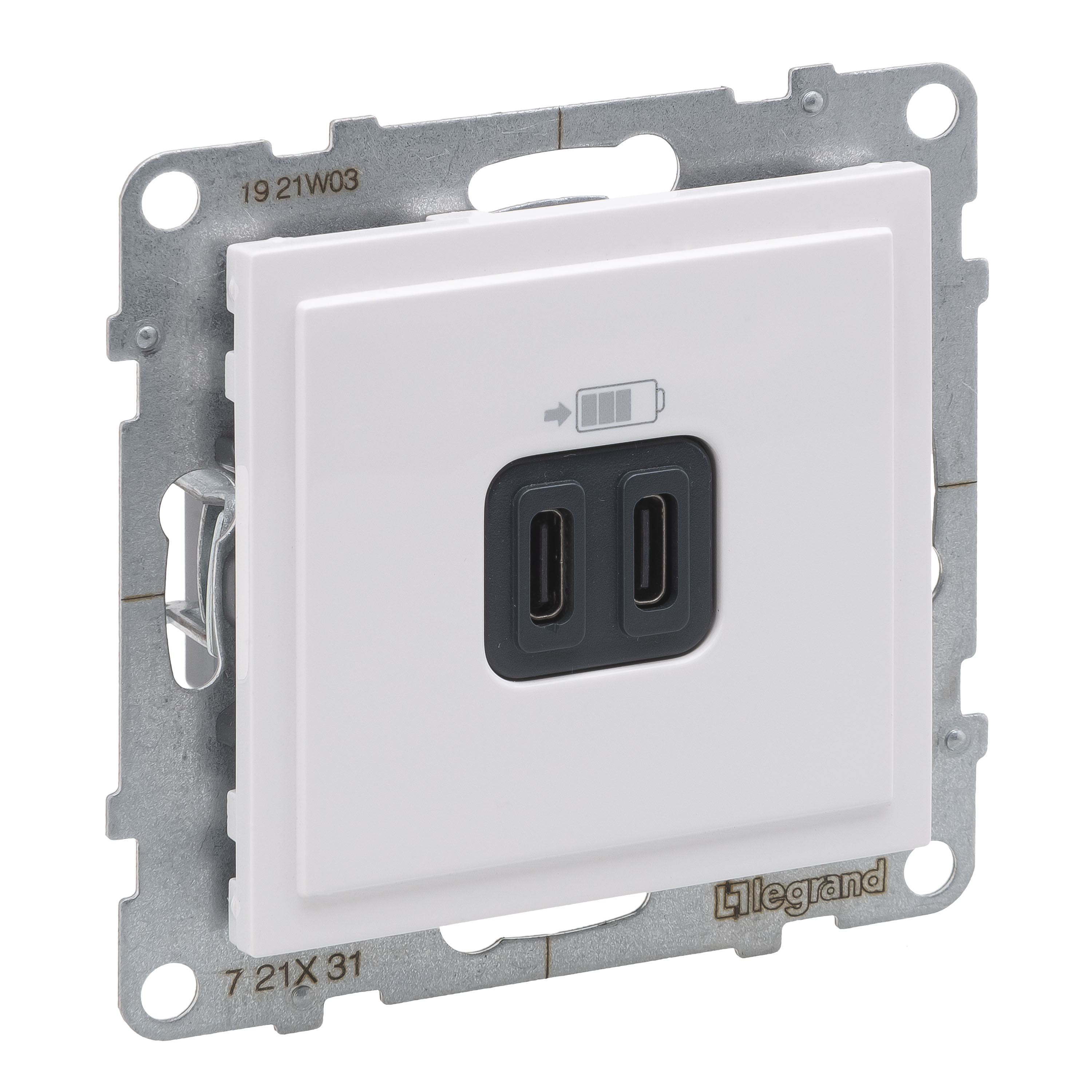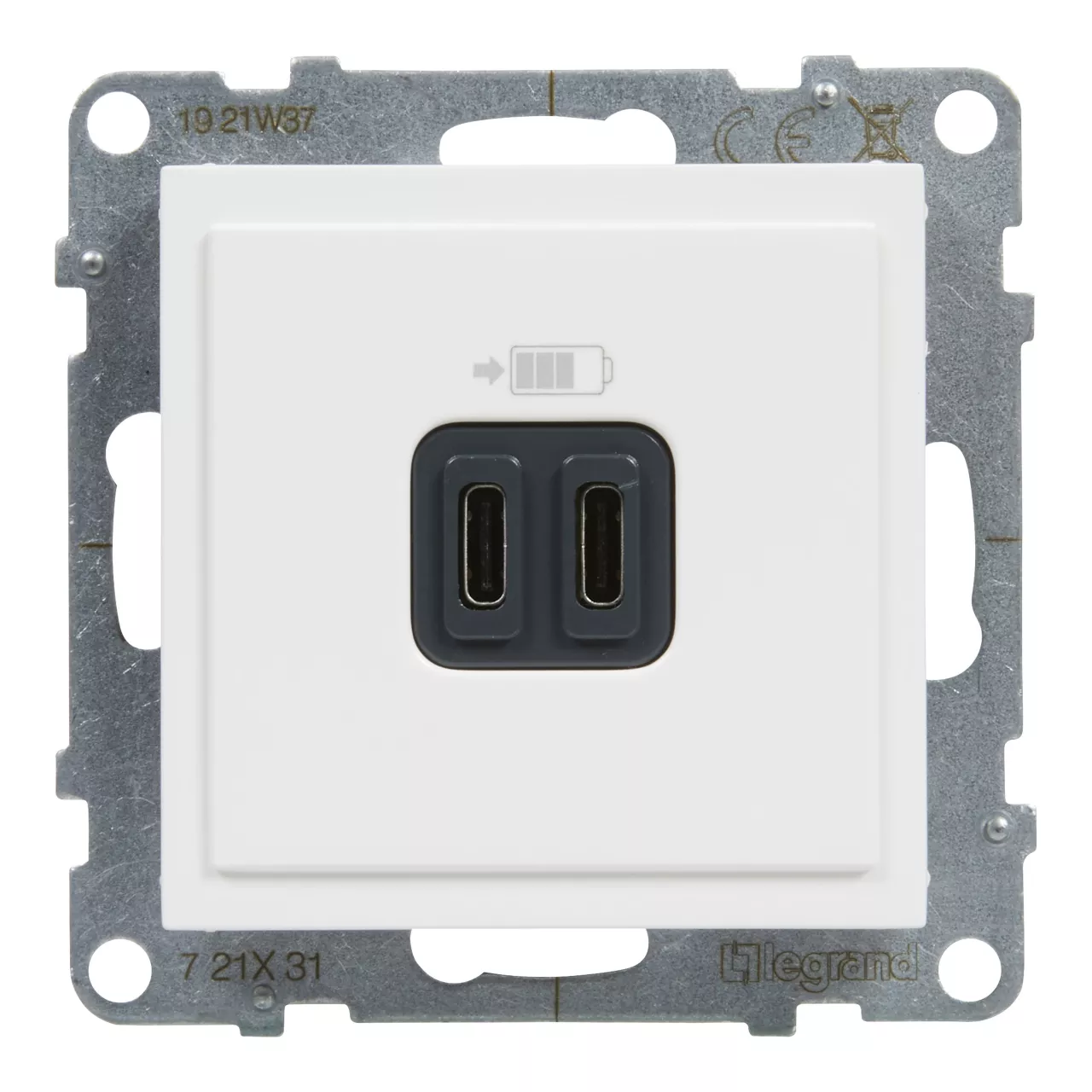 SUNO - Gniazdo USB typ C + C - 5 V - 3 A, Biały, 721131, Legrand