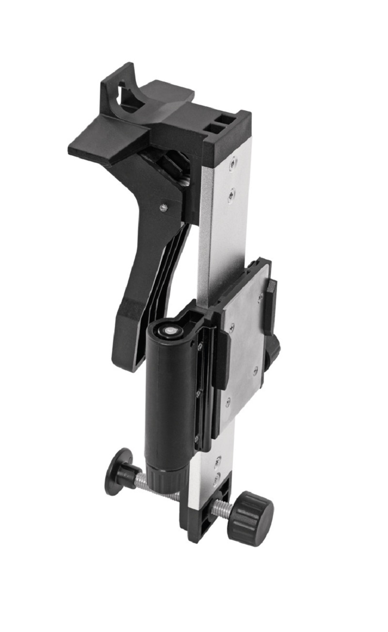 Uchwyt ścienny do ustawiania laserów z systemem magnesów na żądanej wysokości roboczej. Regulacja wysokości w zakresie 11 cm – kalibracja zgrubna i dokładna do precyzyjnego ustawiania promienia lasera. Optymalny do prac na sufitach – bezpieczne zamocowanie do szyn profilowych o grubości do 5 mm. Otwór na gwóźdź do mocowania uchwytu na ścianie. Doskonały w połączeniu z uchwytem uniwersalnym SUB 10.