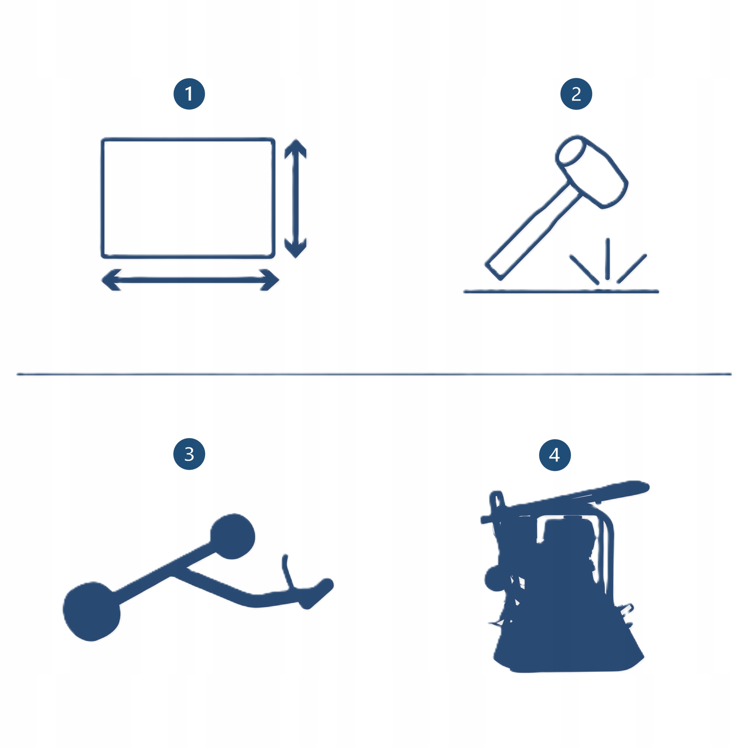 - Gumowa Mata: Dołączona gumowa mata chroni powierzchnie brukowe podczas zagęszczania, zapobiegając uszkodzeniom materiału.