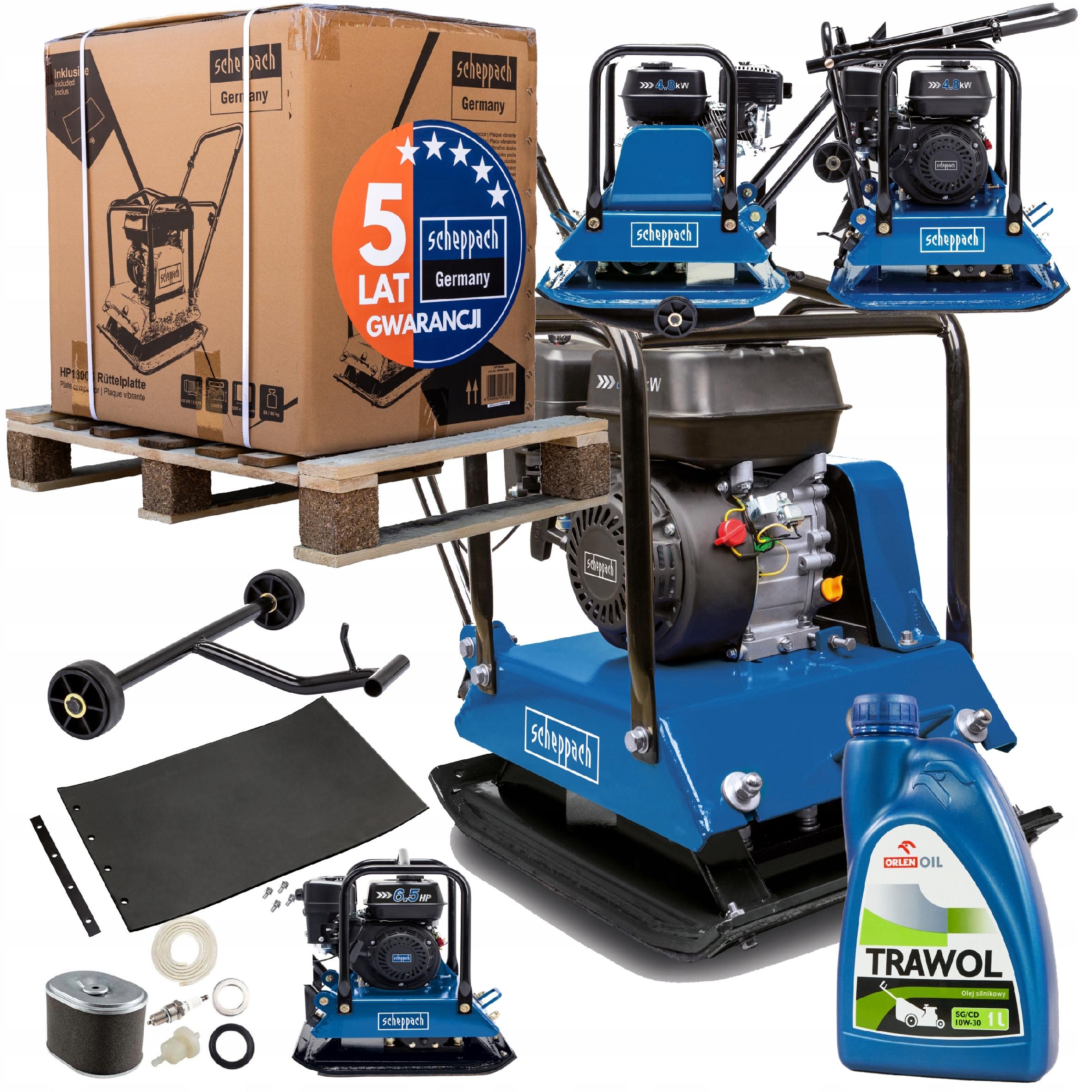 Mocna zagęszczarka spalinowa do prac budowlanych SCHEPPACH HP2000S SCHEPPACH HP2000S to profesjonalna płyta wibracyjna o sile zagęszczania 25 kN, szerokości roboczej 50 cm i wadze 102 kg – niezastąpiona przy utwardzaniu gruntu, kostki brukowej czy podbudowy pod fundamenty. Wyposażona w silnik spalinowy o mocy 6,5 KM zapewnia wysoką efektywność pracy i niezawodność nawet w trudnych warunkach. Głębokość zagęszczania do 30 cm pozwala na skuteczne przygotowanie podłoża pod różne inwestycje. Dzięki solidnej konstrukcji oraz dołączonej macie poliuretanowej urządzenie świetnie sprawdza się także przy pracach brukarskich, chroniąc powierzchnie przed uszkodzeniami. Dlaczego warto wybrać SCHEPPACH HP2000S? Siła zagęszczania 25 kN – szybkie i skuteczne utwardzanie podłoża Szerokość robocza 50 cm – wydajna praca na większych powierzchniach Silnik spalinowy 6,5 KM – niezawodna moc w każdych warunkach Głębokość zagęszczania do 30 cm – idealna do podbudów i fundamentów Mata poliuretanowa w zestawie – bezpieczne zagęszczanie kostki brukowej Stabilna i wytrzymała konstrukcja – długa żywotność urządzenia Dane techniczne Model: HP2000S Silnik: spalinowy, 6,5 KM Siła zagęszczania: 25 kN Szerokość płyty roboczej: 50 cm Głębokość zagęszczania: do 30 cm Waga: 102 kg W zestawie: mata poliuretanowa Zastosowanie: zagęszczanie gruntu, podbudowy, kostki brukowej