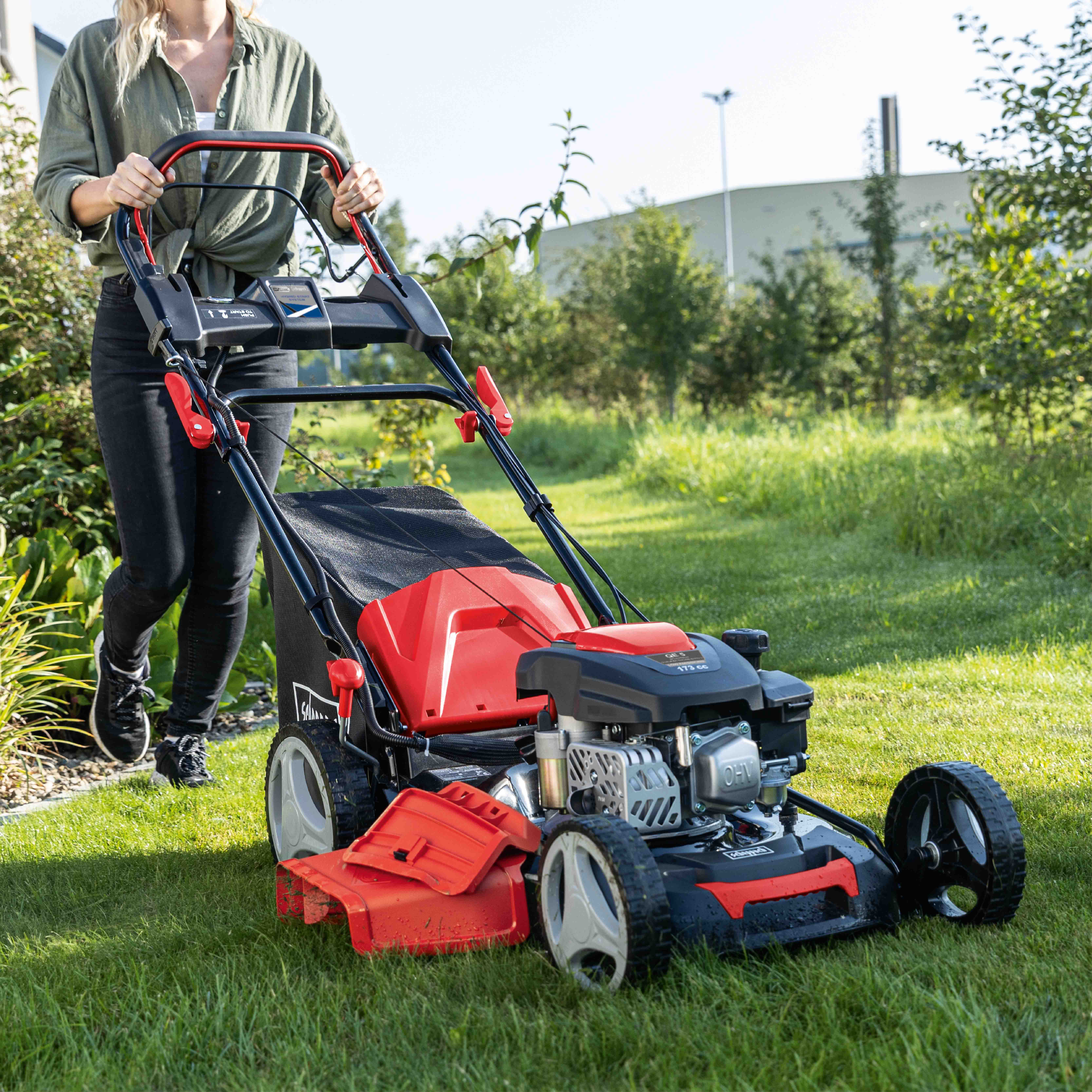 SCHEPPACH MS173-51E to niezawodna kosiarka spalinowa z napędem i hybrydowym rozruchem (ręczny + elektro), idealna do trawników o powierzchni do 1600 m2. Dzięki szerokości koszenia 51 cm i mocnemu silnikowi 173 cm3 bez trudu radzi sobie nawet z wysoką trawą.