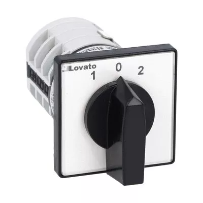 7GN1226U Łącznik krzywkowy serii 7GN, przełącznik zmiany kierunku obrotów silnika 3 fazowego, z powrotem do pozycji 0, 16A, do montażu tablicowego, z czarnym pokrętłem i tabliczką 48x48mm