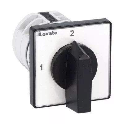 7GN1255U Łącznik krzywkowy serii 7GN, przełącznik sieci bez 0, 2 pola, 16A, do montażu tablicowego, z czarnym pokrętłem i tabliczką 48x48mm