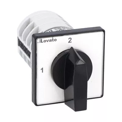 7GN1256U Łącznik krzywkowy serii 7GN, przełącznik sieci bez 0, 3 pola, 16A, do montażu tablicowego, z czarnym pokrętłem i tabliczką 48x48mm