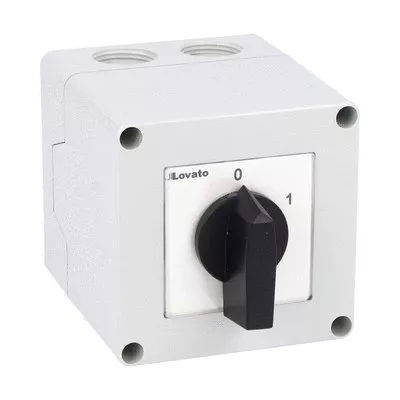 7GN2510P Łącznik krzywkowy serii 7GN, rozłącznik, 3 pola, 25A, w obudowie 75x75mm i czarnym pokrętłem