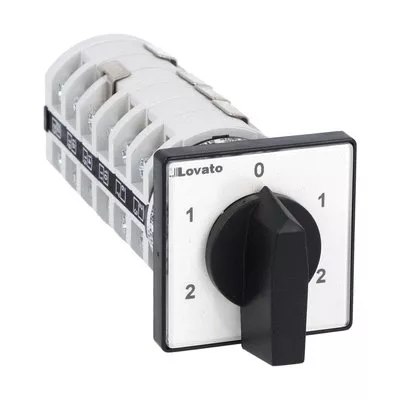 7GN2520U Łącznik krzywkowy serii 7GN, przełącznik zmiany kirunku obrotów silnika dwubiegunowego, układ Dahlandera, 25A, do montażu tablicowego, z czarnym pokrętłem i tabliczką 48x48mm