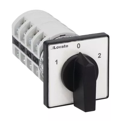 7GN2575U Łącznik krzywkowy serii 7GN, przełącznik sieci, 4 pola, 25A, do montażu tablicowego, z czarnym pokrętłem i tabliczką 48x48mm