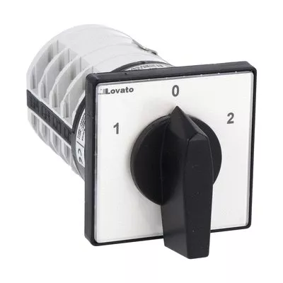 7GN4013U Łącznik krzywkowy serii 7GN, przełącznik silnika dwubiegunowego 1-0-2, układ Dahlandera, 40A, do montażu tablicowego, z czarnym pokrętłem i tabliczką 65x65mm