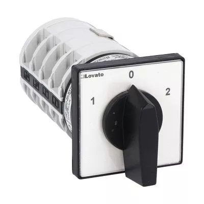 7GN6313U Łącznik krzywkowy serii 7GN, przełącznik silnika dwubiegunowego 1-0-2, układ Dahlandera, 63A, do montażu tablicowego, z czarnym pokrętłem i tabliczką 65x65mm