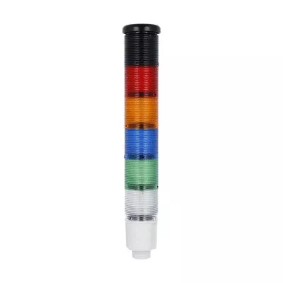 8LT4K09BG Kolumna sygnalizacyjna, fi45mm, kolor: biały, zielony, niebieski, pomarańczowy i czerwony, sygnalizacja dźwiękowa, sygnał ciągły lub przerywany, zasilanie 24VDC, wbudowany obwód LED